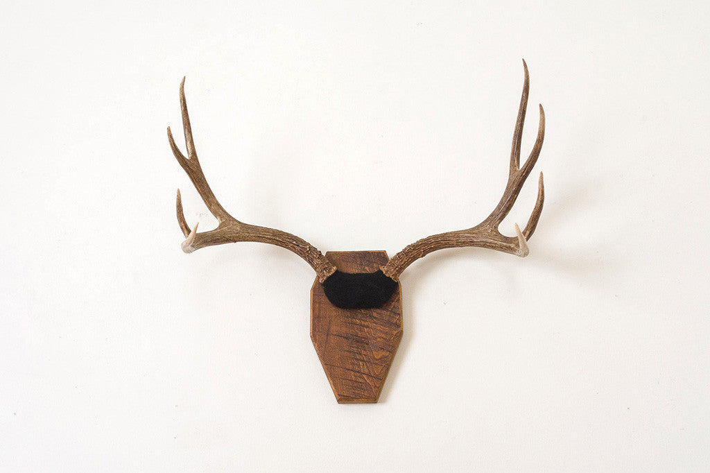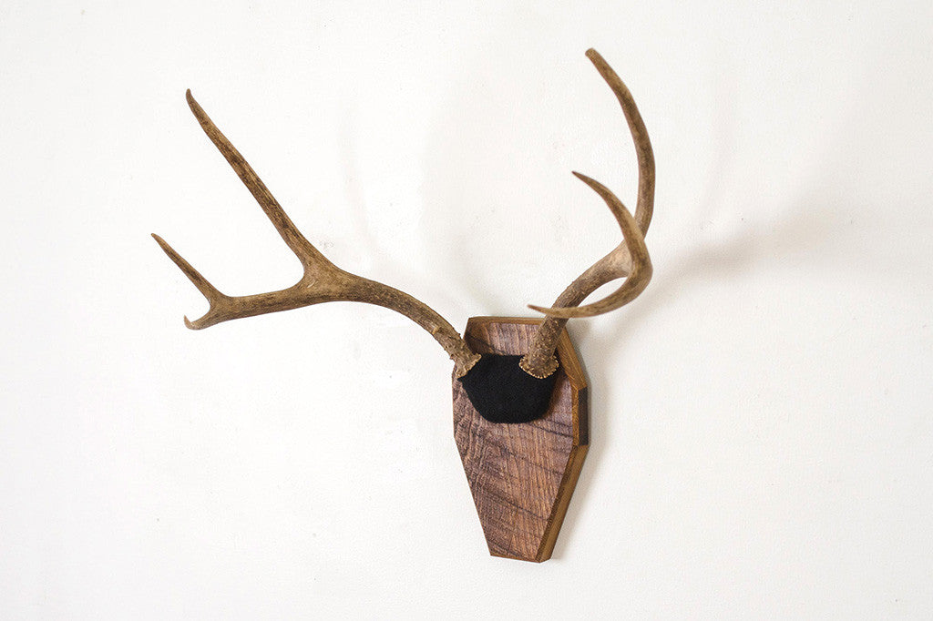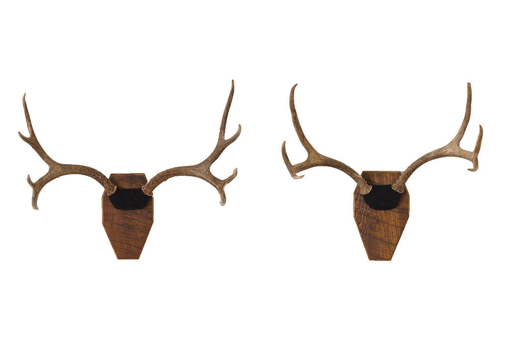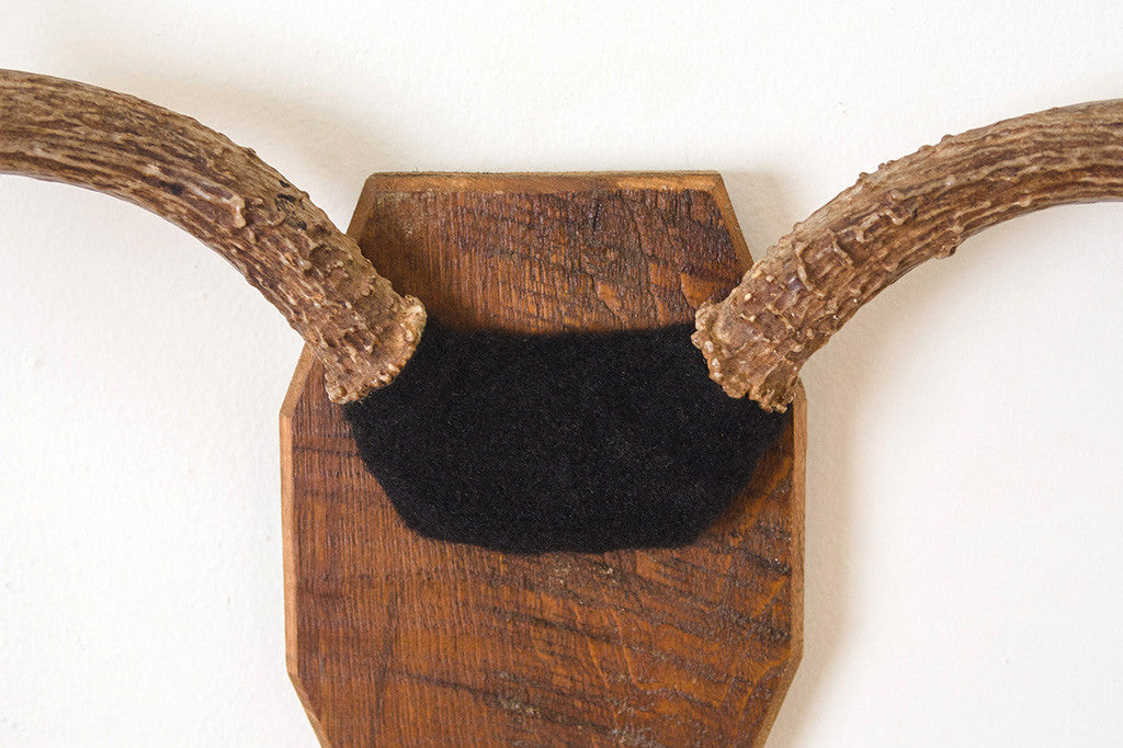 These vintage deer antlers are mounted on a wood plaque with black velvet upholstery. They're in great shape with light age appropriate wear. Besides being displayed, they would make a great coat, hat or towel rack. Please see pictures for detailed condition of this set.