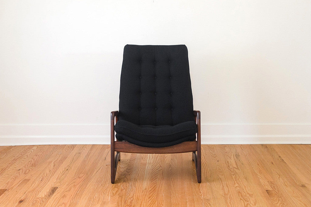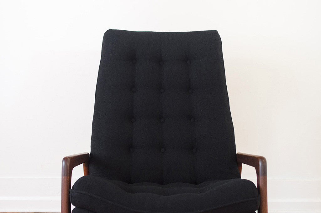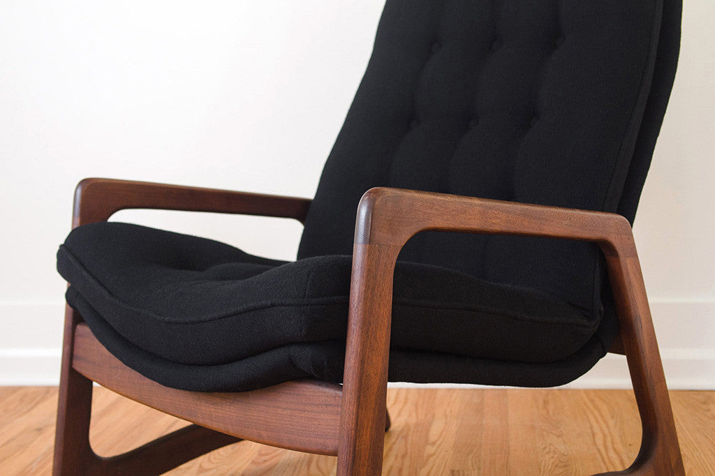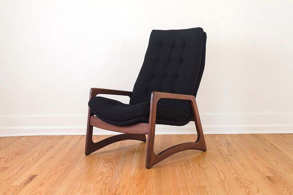 This Mid Century Adrian Pearsall lounge chair is definitely our best chair to date. We had it recovered in black wool and it looks incredible. It has a beautiful and sturdy wood frame with the distinct Pearsall look. It's in excellent shape with some light age related wear to the frame.