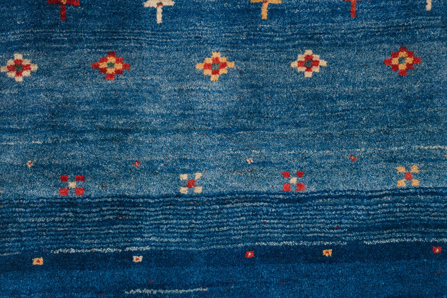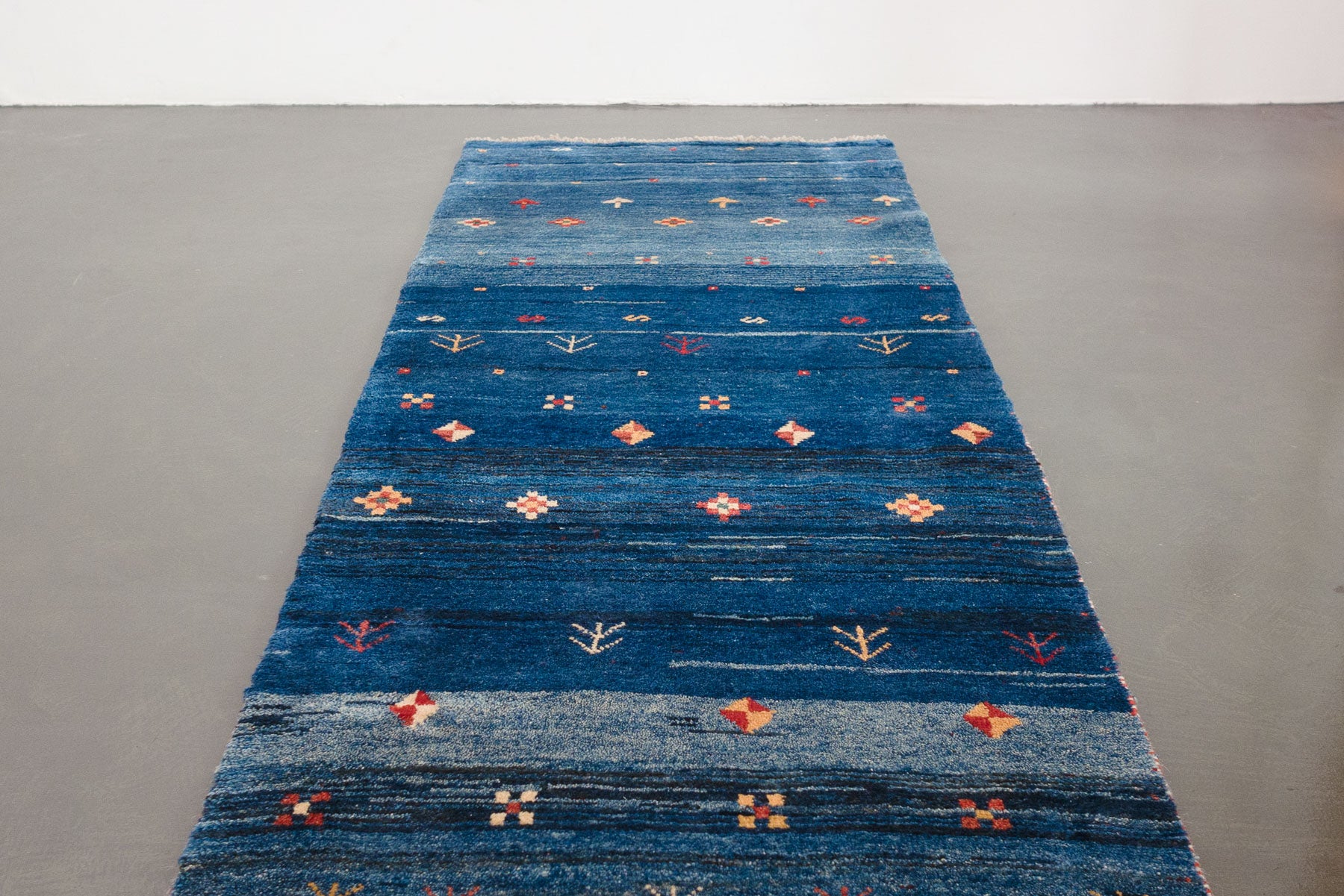 name: Vahbodorigin: Iran (Persian), Fars, Gabbehstyle: runner, rug, carpetmaterial: hand knotted woolcolors: blue, red, yellow, orange, creamage: vintagecondition: good, age related wear - see picturesappraised value: $3,000