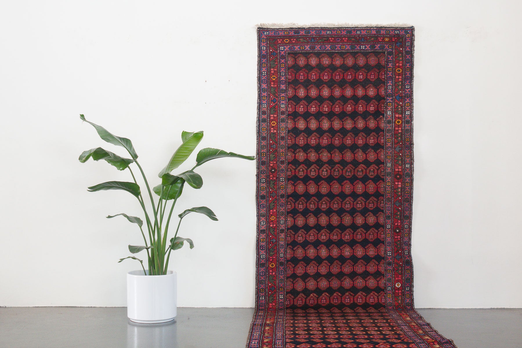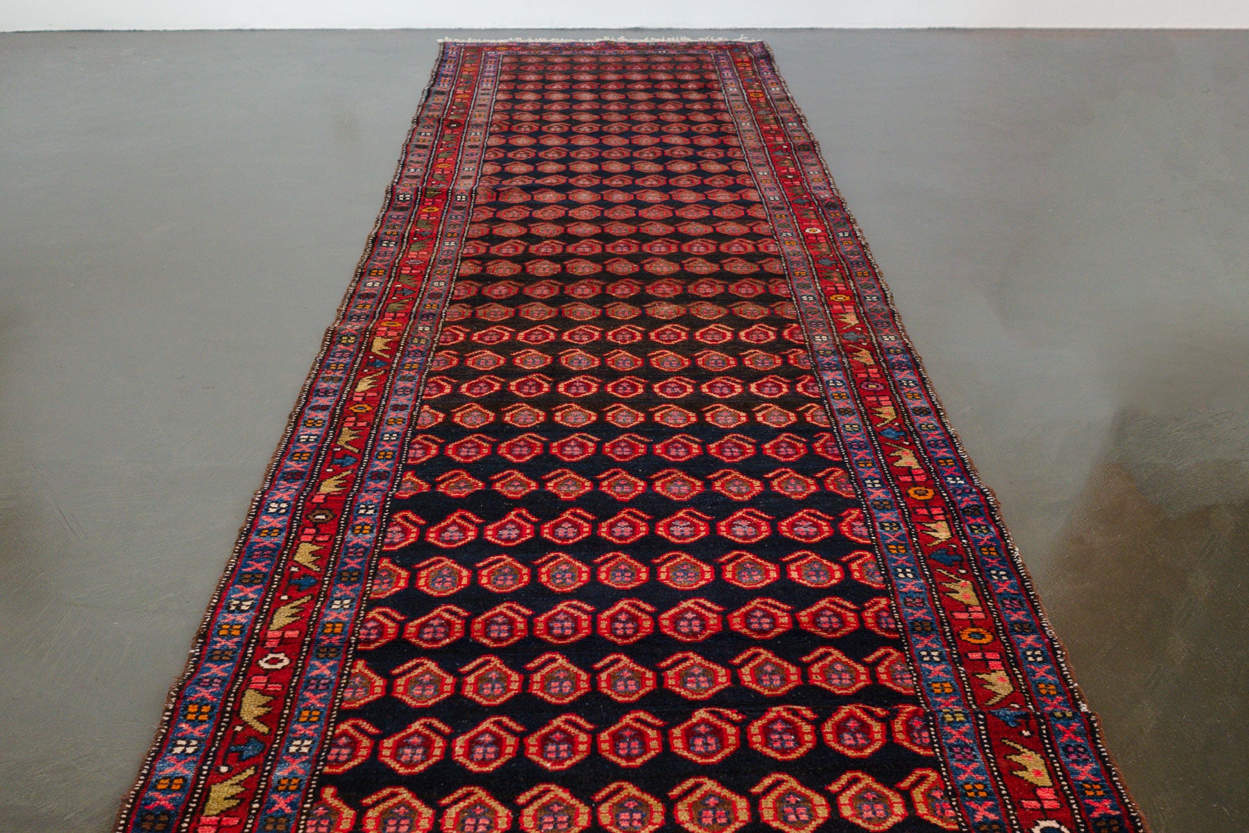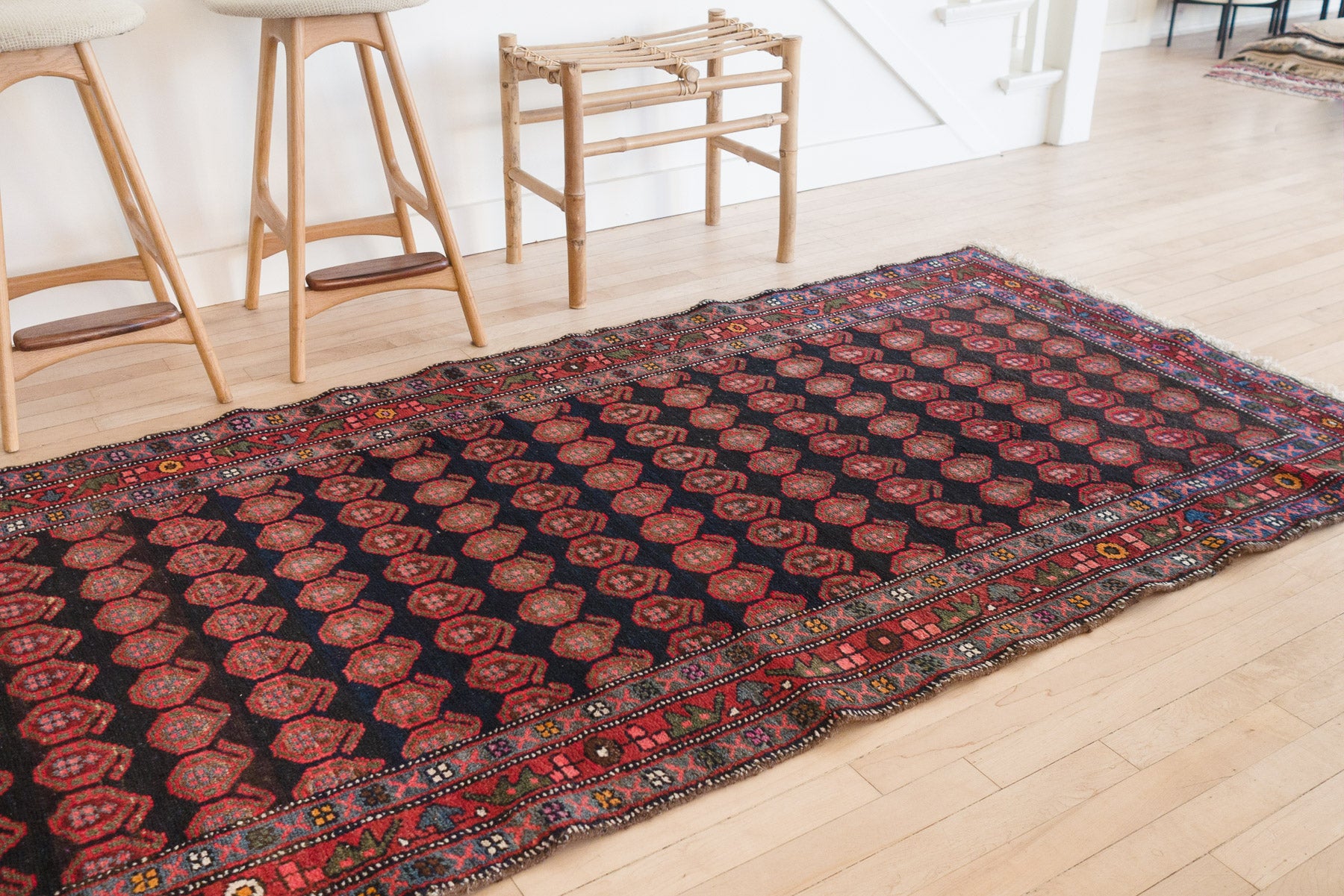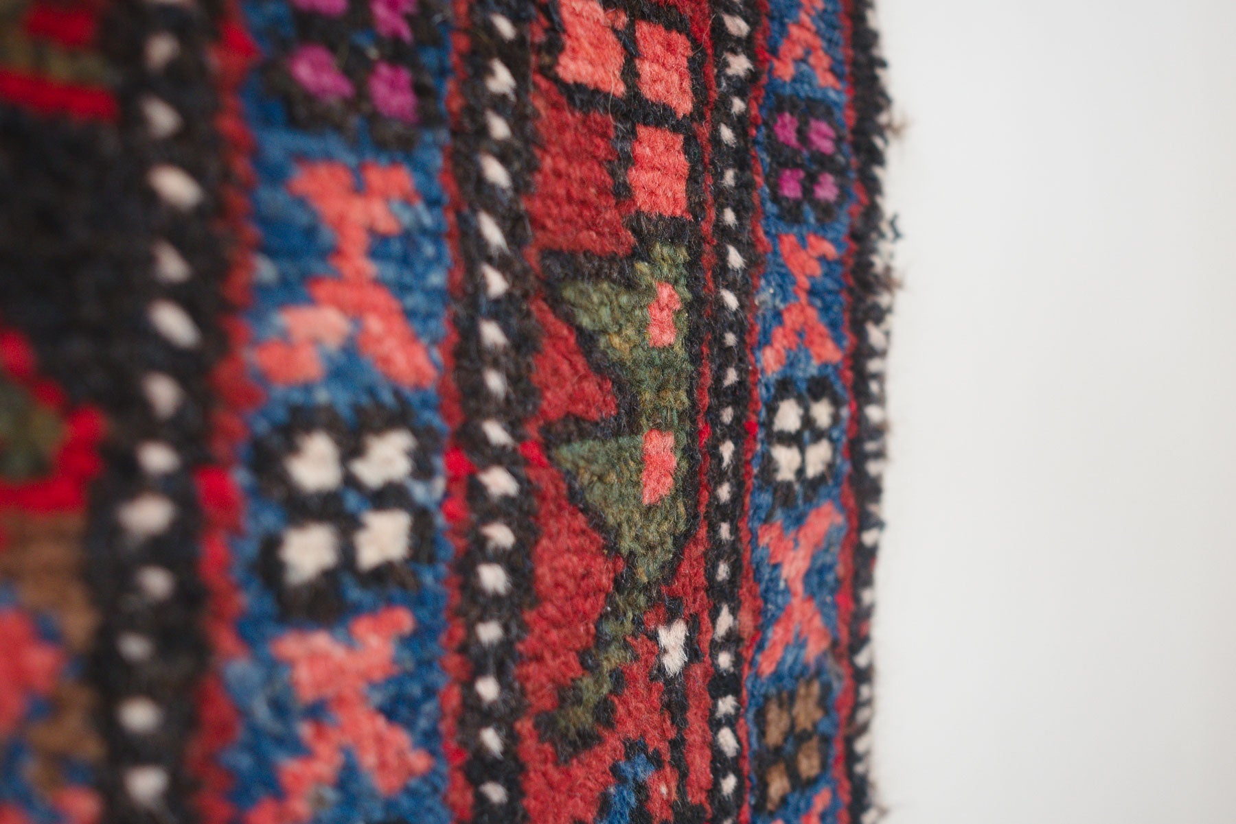 name: Shahkamorigin: Iran (Persian)style: rug, carpetmaterial: hand knotted woolcolors: black, red, blues, gold, pink, green, camel, creamage: vintage, 1940-1970condition: good, age related wear - see picturesappraised value: $1,612