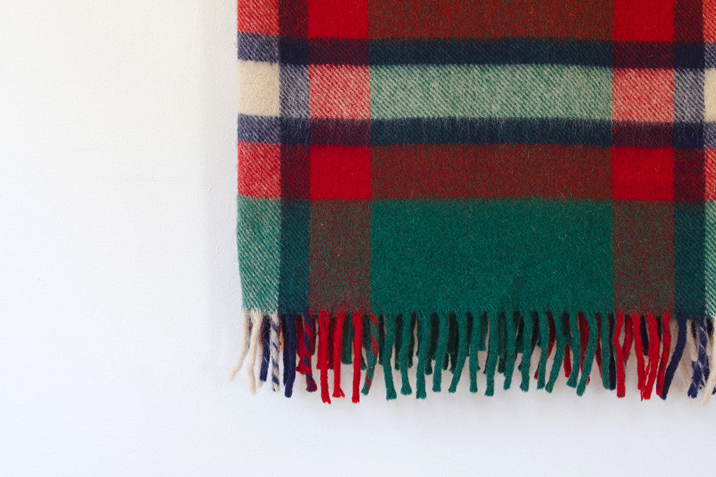 off-white plaid wool in great overall shape. Perfect for picnics and