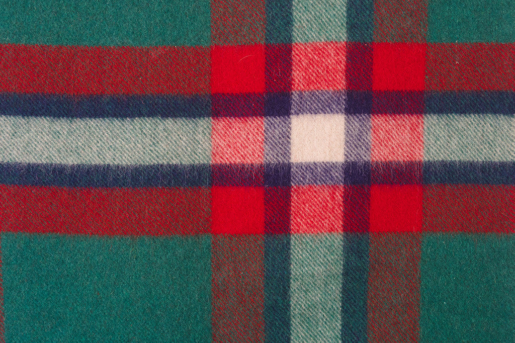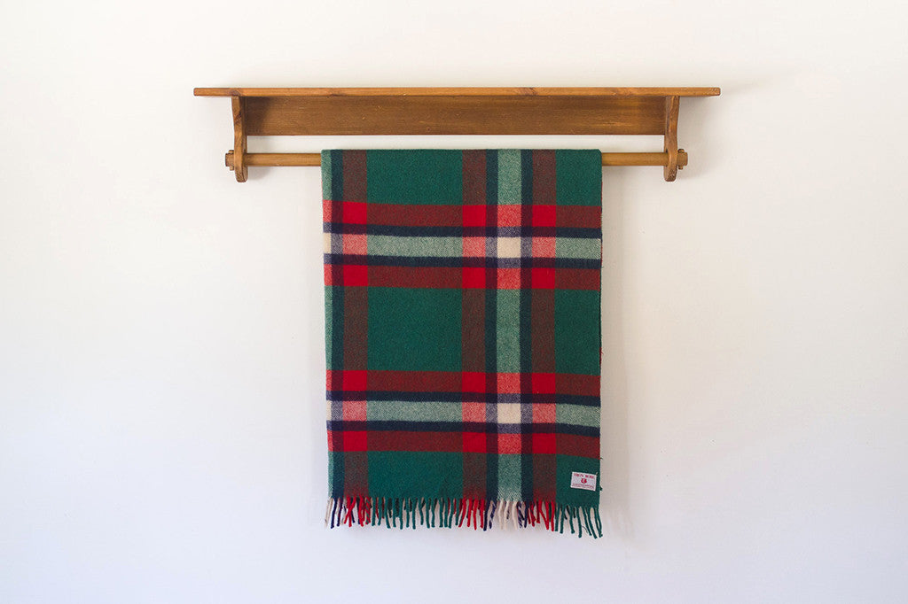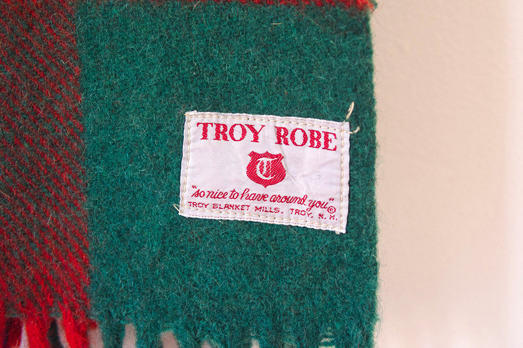 manufactured by Troy Robe in Troy NH. It's a green, red, navy and