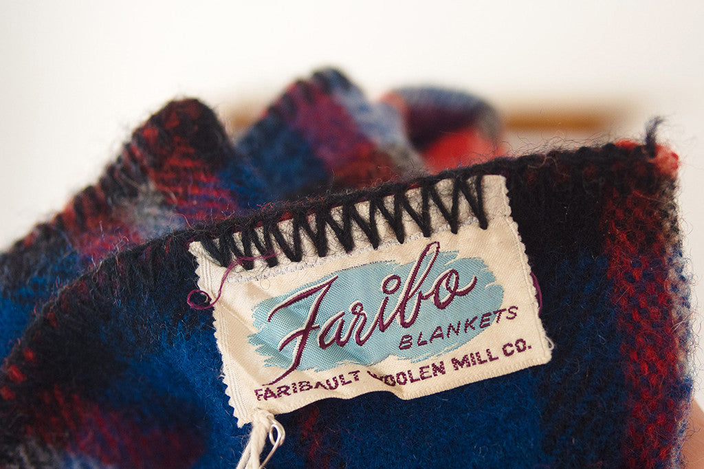 brand, manufactured by the Faribault Woolen Mill Co. It's a blue, red,