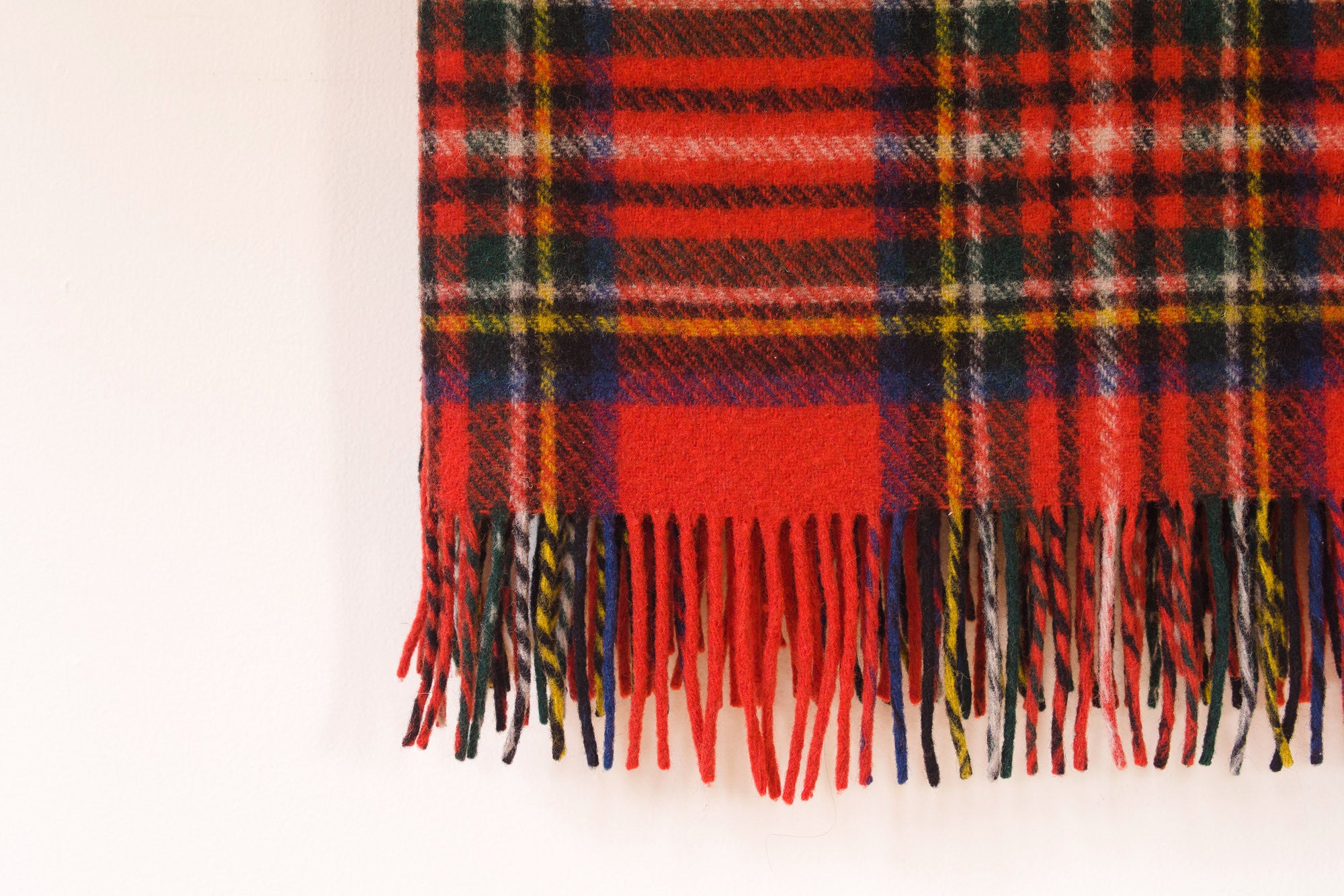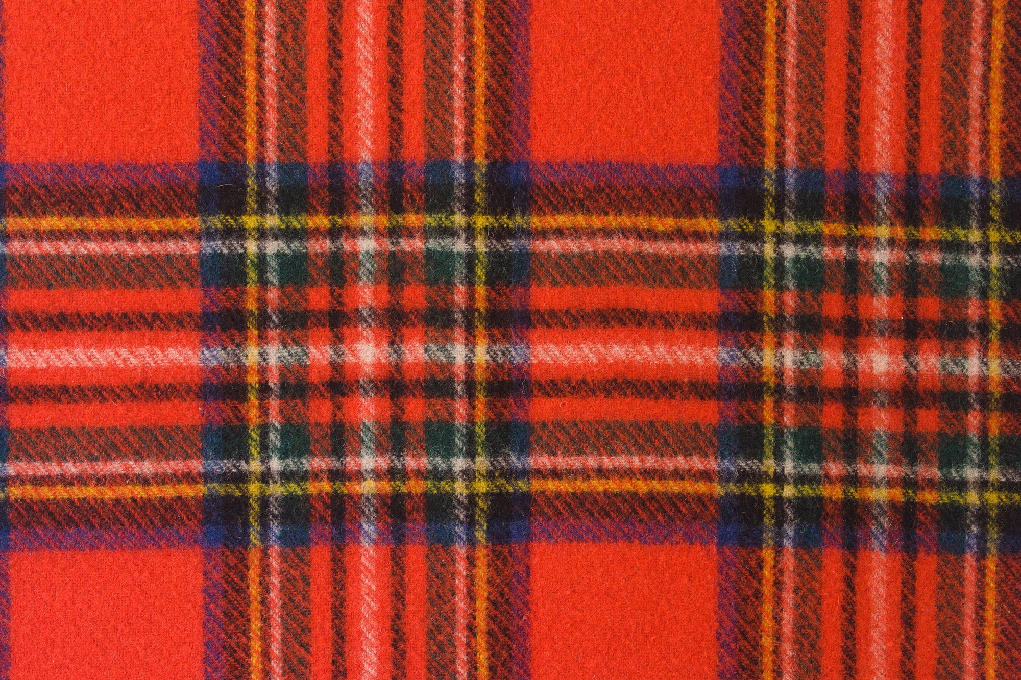 a red, yellow, blue, black and white tartan plaid wool in great overall