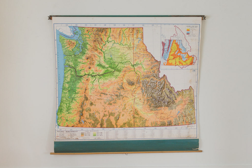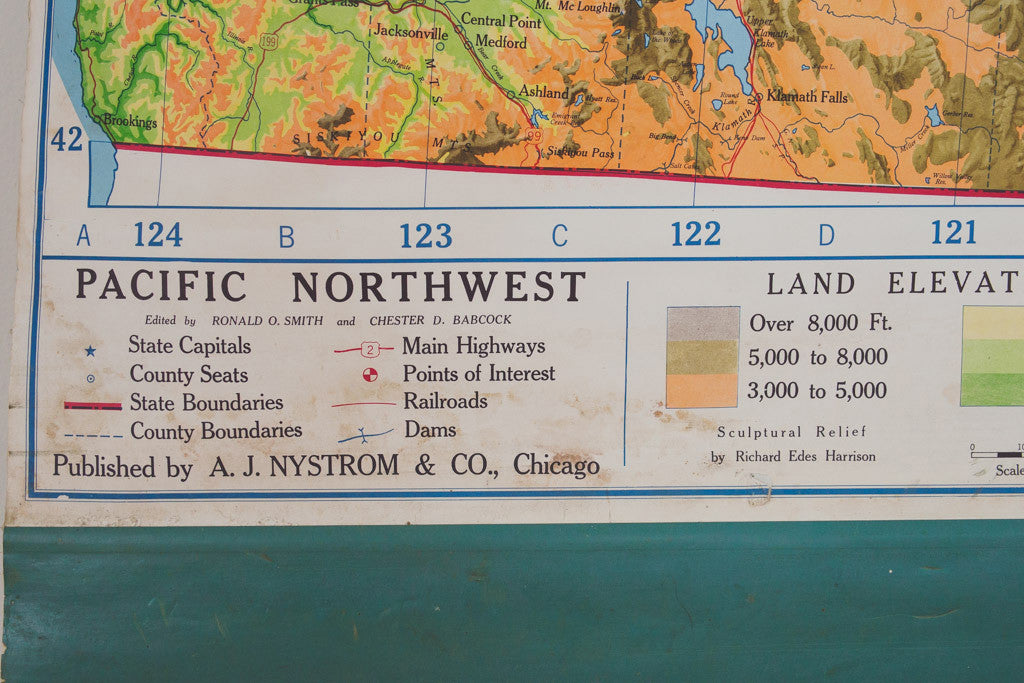 This large vintage pulldown Pacific Northwest map was published by A.J. Nystrom & Co. in Chicago. It's in good shape and is ready to hang. Please see pictures for detailed condition.