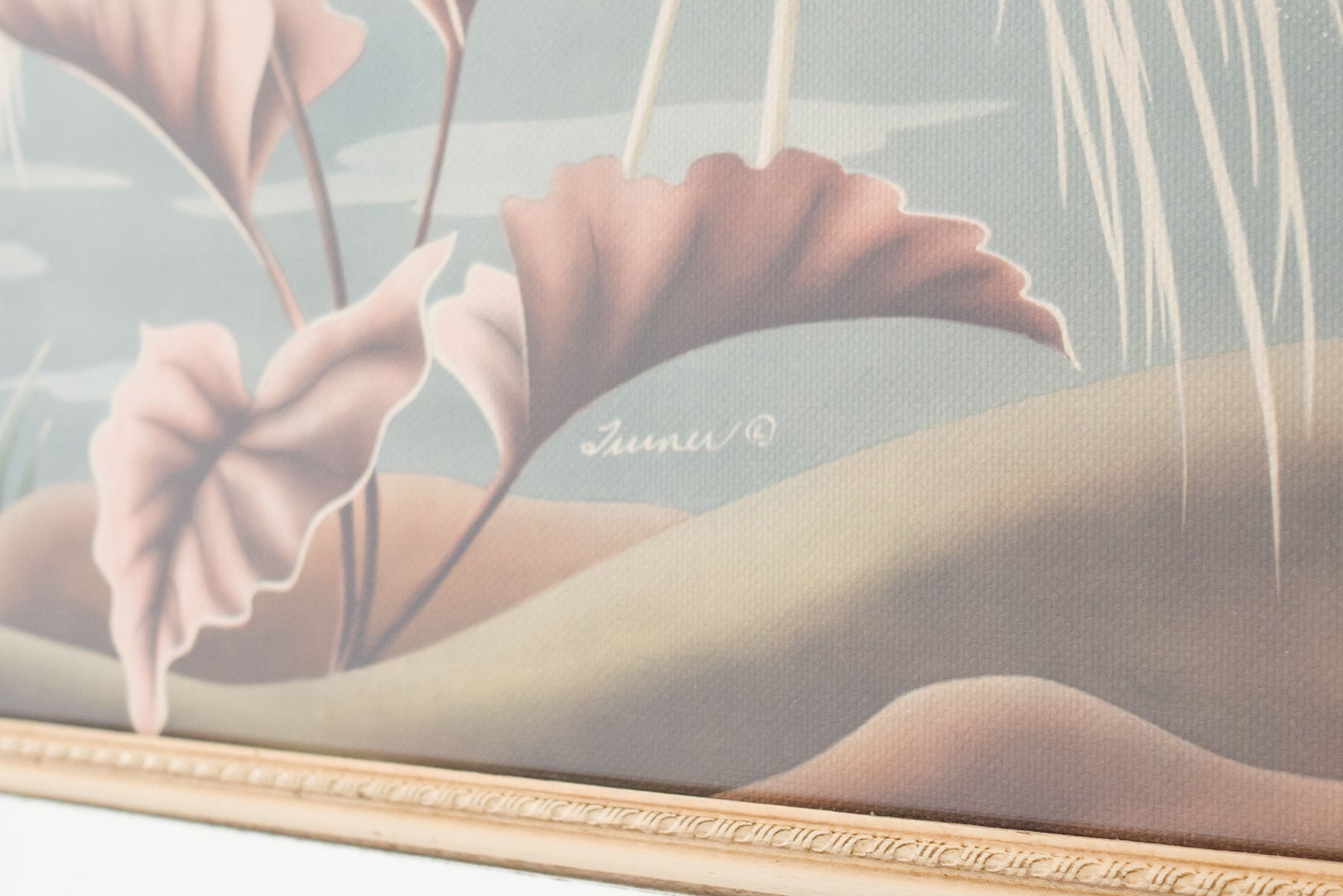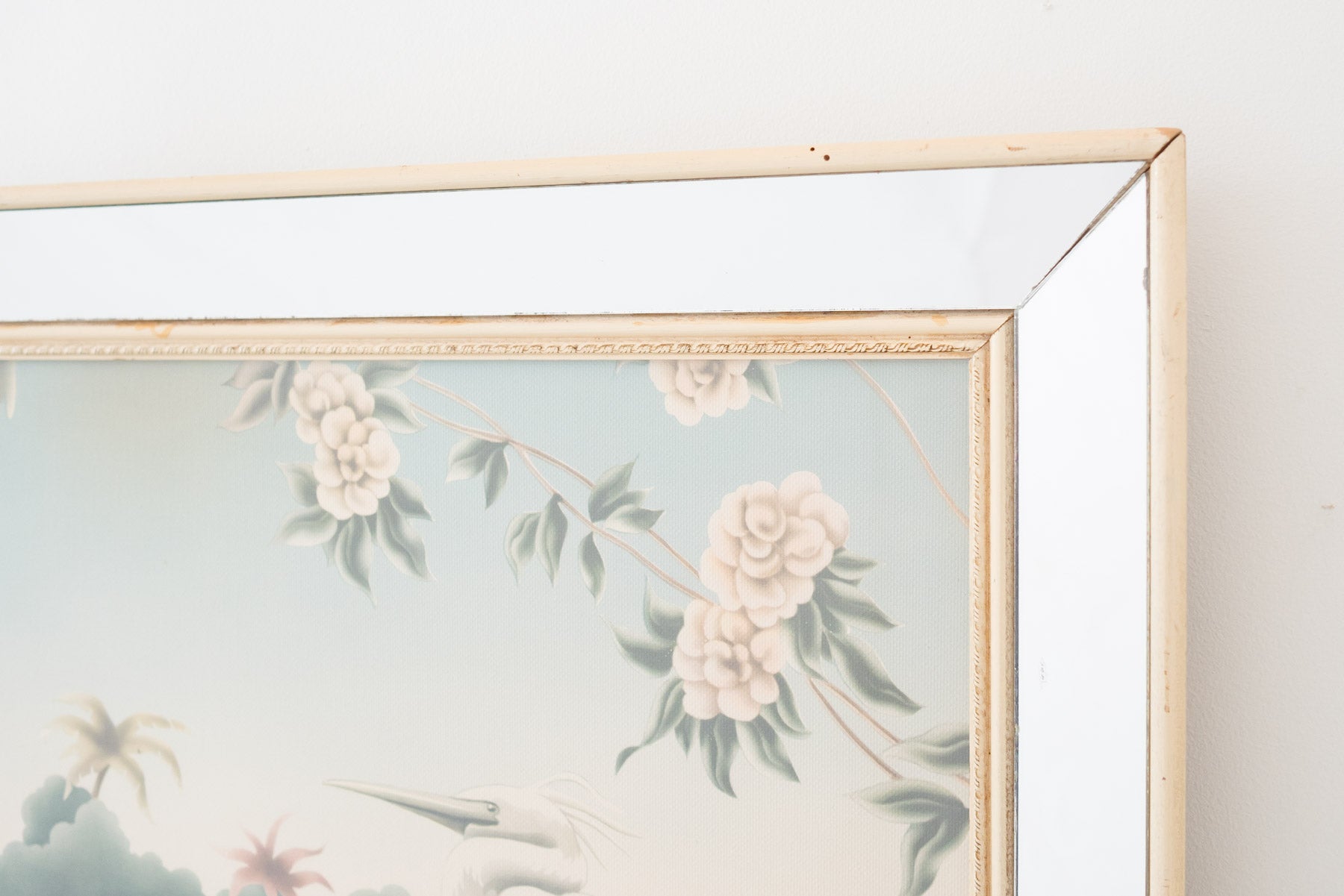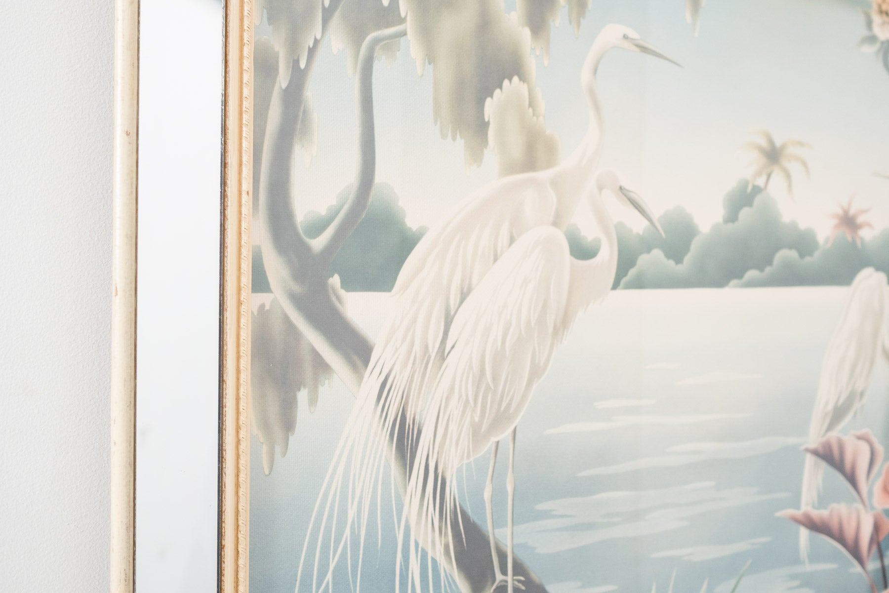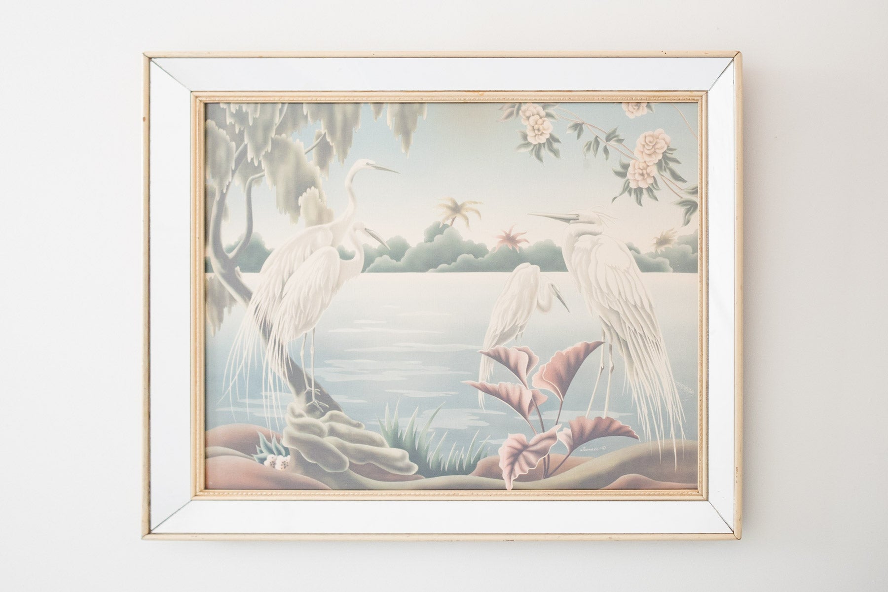 style: original print, landscape, art nouveau, cranesmaterial: wood, glass, mirror, paper, ink signed: Turnerage: vintage 1940scondition: good, age related wear - see pictures