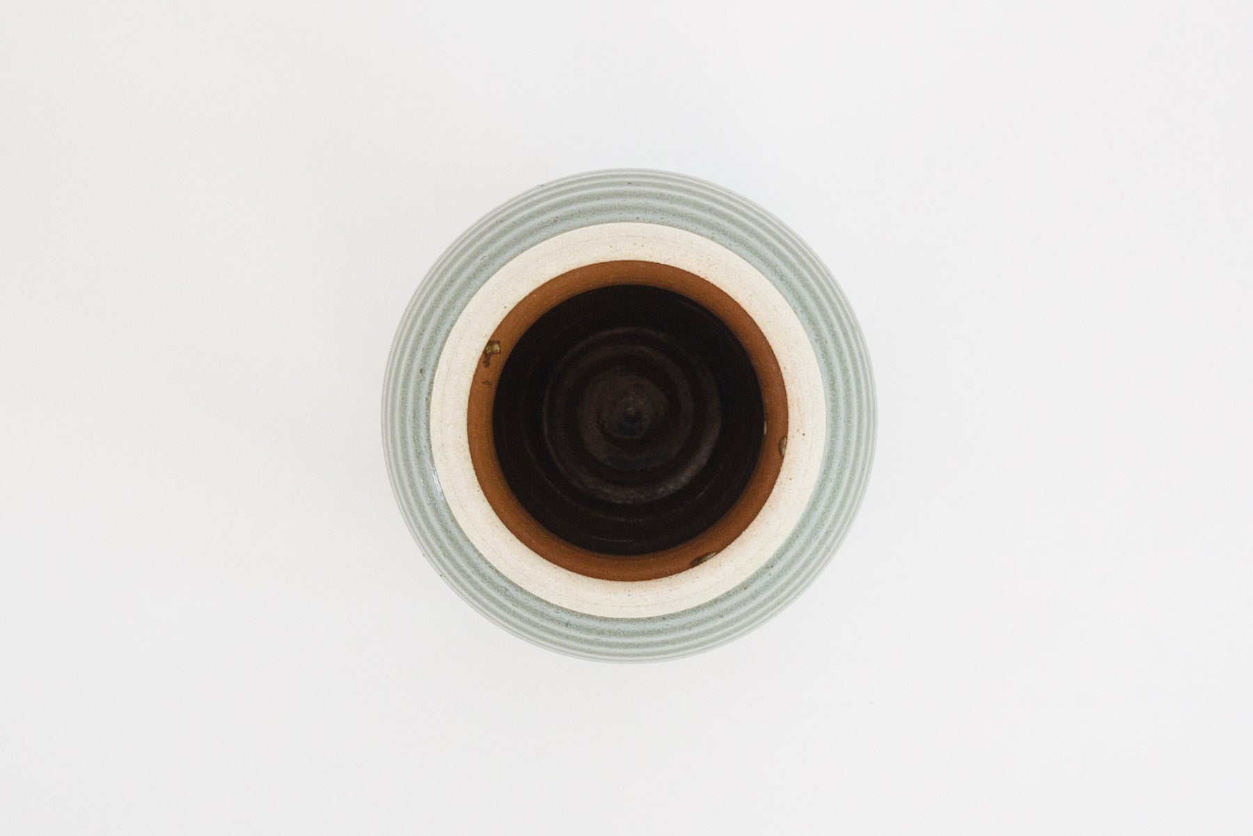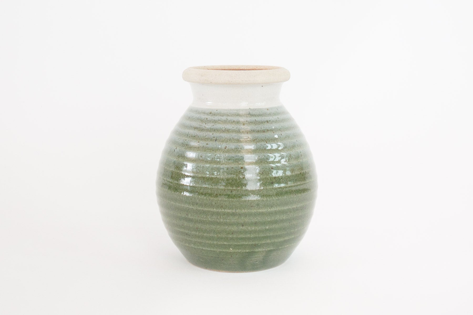 style: ceramic, studio pottery, vase, displaymaterial: clay, glaze - green, whiteage: vintagecondition: good, age related wear - see pictures