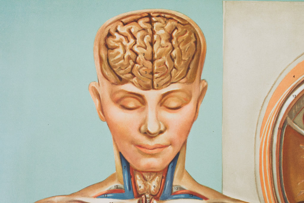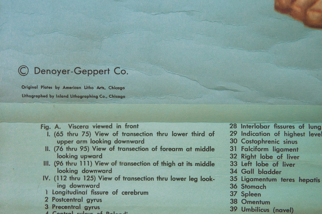This large vintage Denoyer-Geppert pull-down anatomy chart has is in good shape with age related wear and is ready to hang. See pictures for detailed condition.