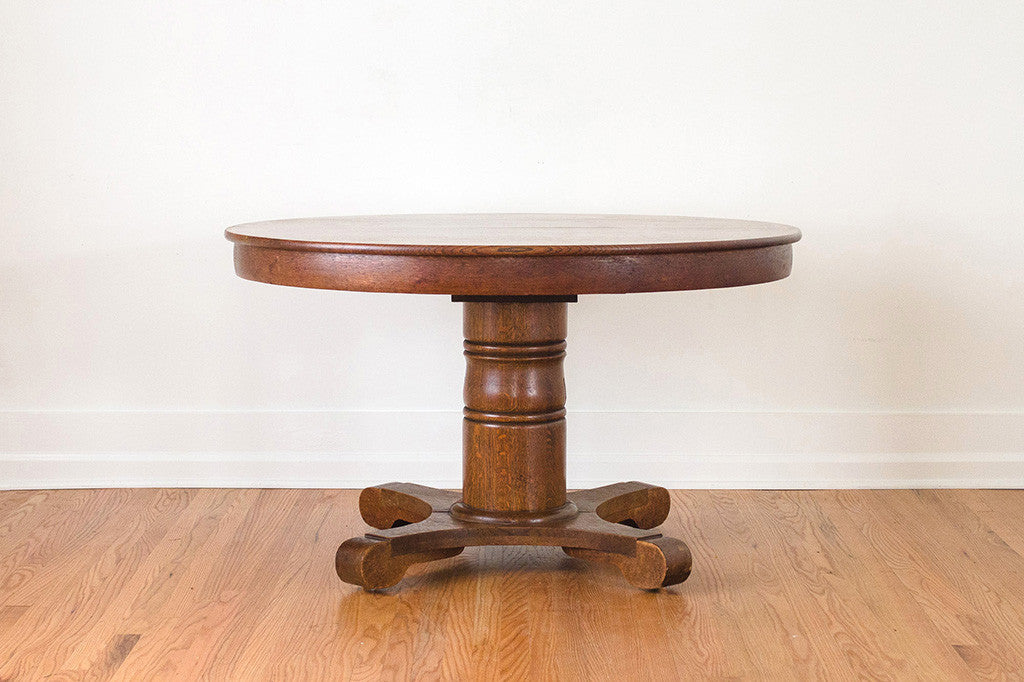 This large antique farm table seats four comfortably and comes with five leaves that expand to seat 16. It's very sturdy and in great shape with light signs of age-related wear. This would be the perfect table for hosting the upcoming holidays. Please see pictures for detailed condition of this piece.