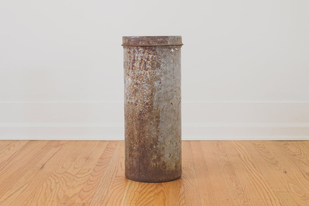 This metal storage bin has a nicely distressed patina and reads, "Seattle". It's in good shape with natural age related wear. It would be a great umbrella stand, trash can or planter. Please see pictures for detailed condition.