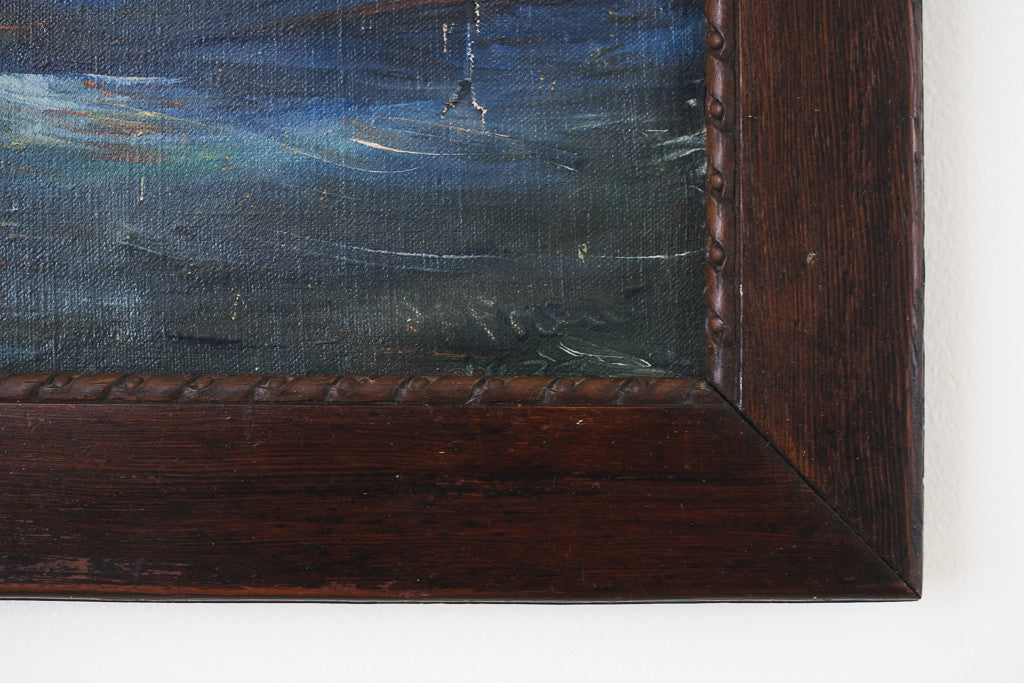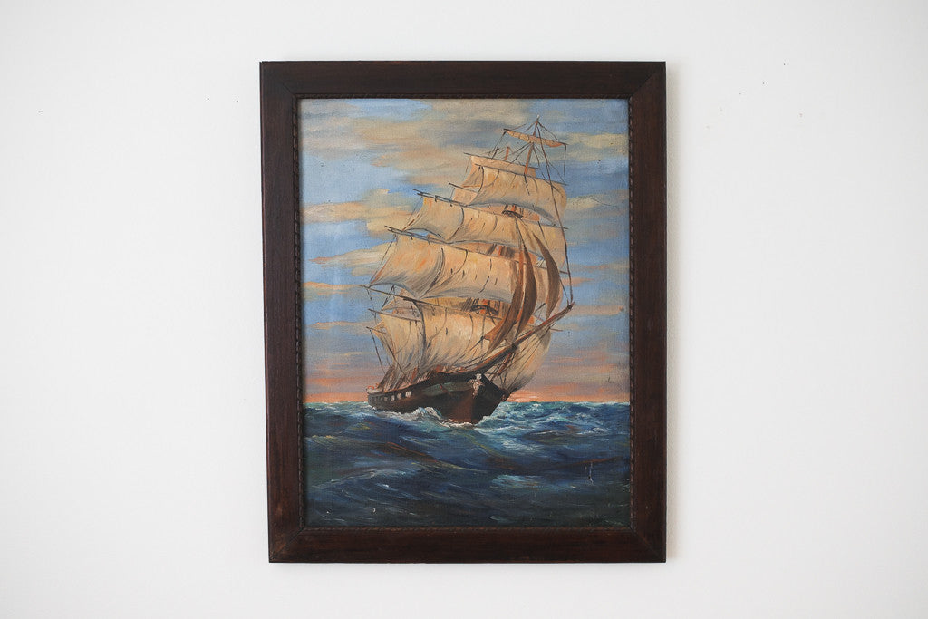 style: nautical, painting, framedmaterial: wood, canvas, paint text: signed by artistage: vintage condition: good, age related wear - see pictures