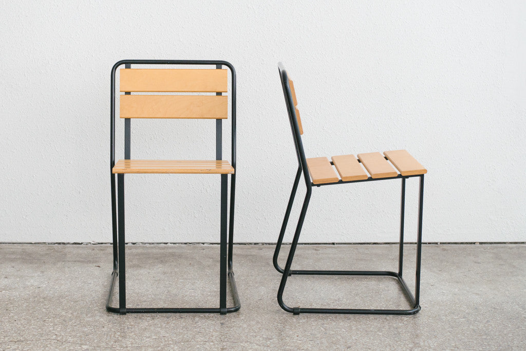 style: pair, Mid Century, Modern, stacking, slat chairs