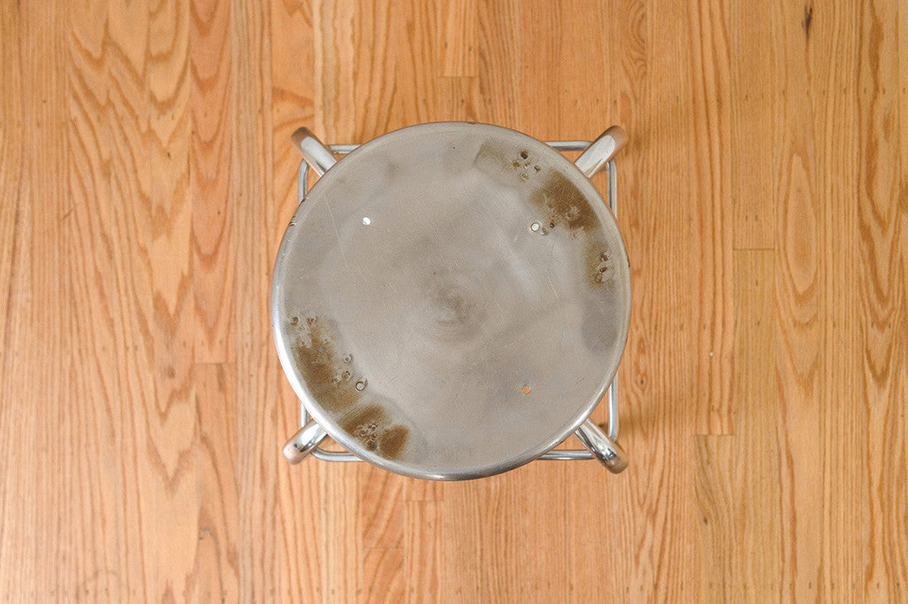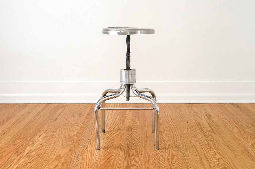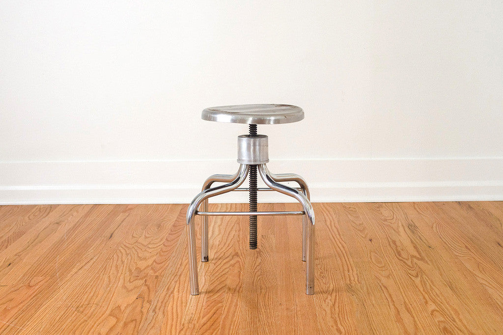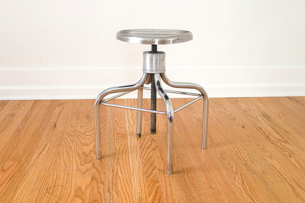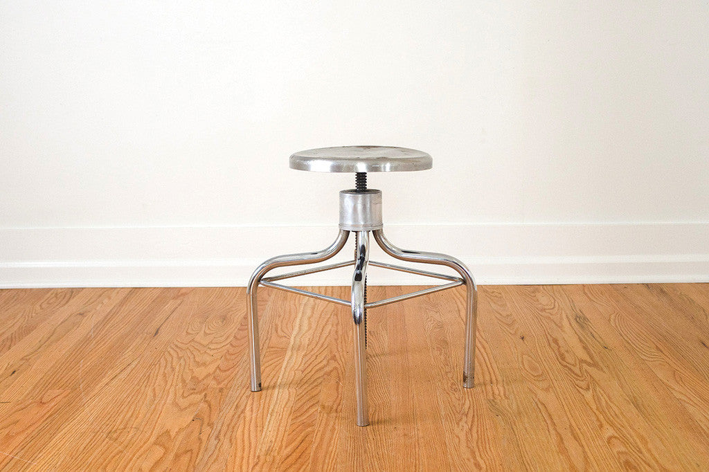 This vintage stainless medical stool would be perfect to use at a desk, drafting table or kitchen island. It would also make a great side table or plant stand. It has a nicely aged patina and is still very sturdy. Please see pictures for detailed condition of this piece.