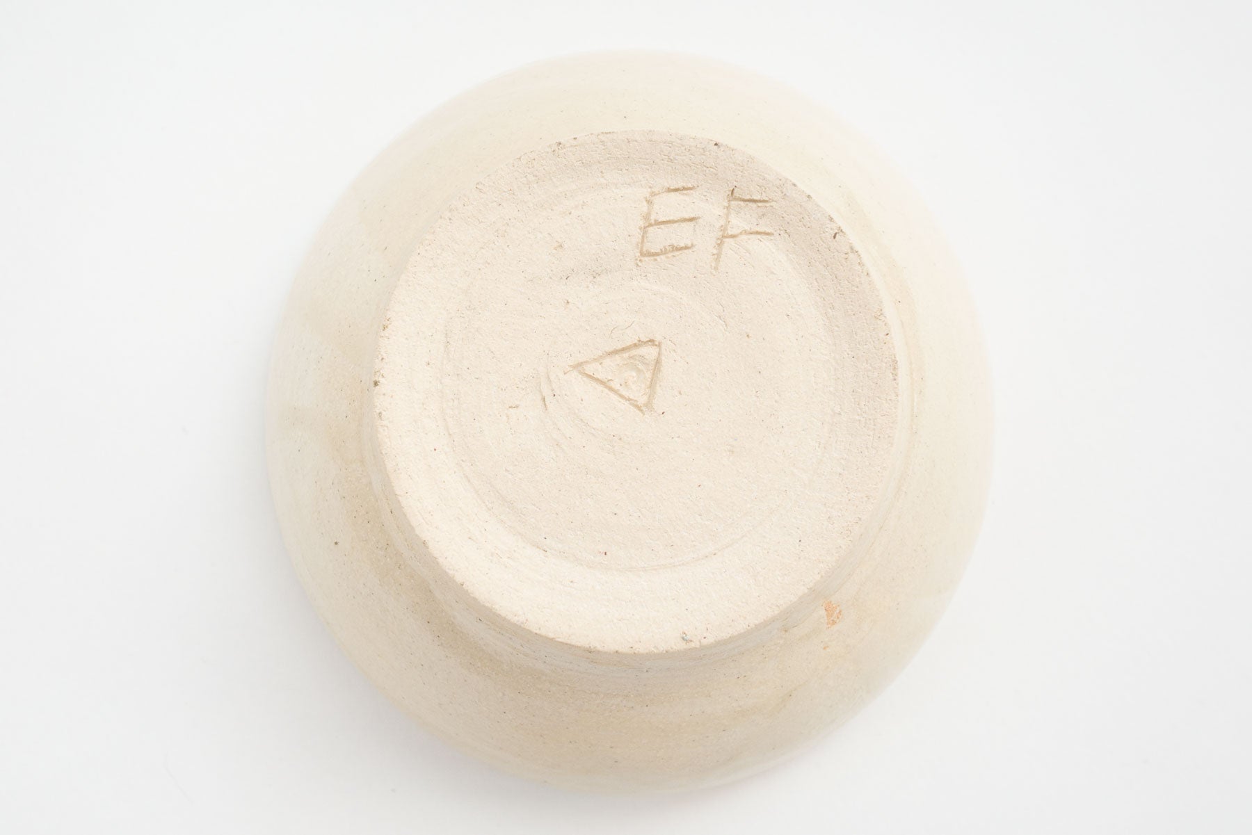 style: hand thrown, ceramic, signed, studio pottery, bowl material: clay, glaze (ivory) signed: EF age: vintage condition: good, age related wear - see pictures