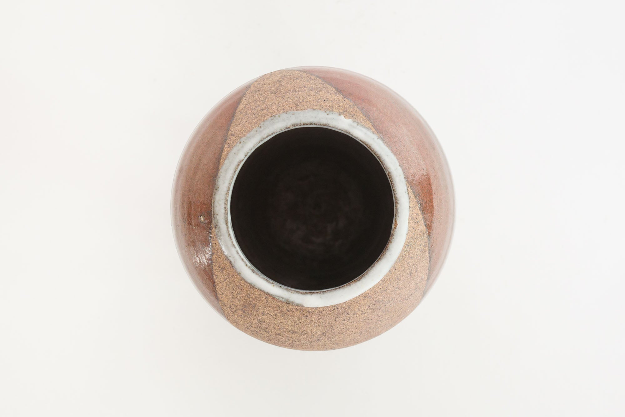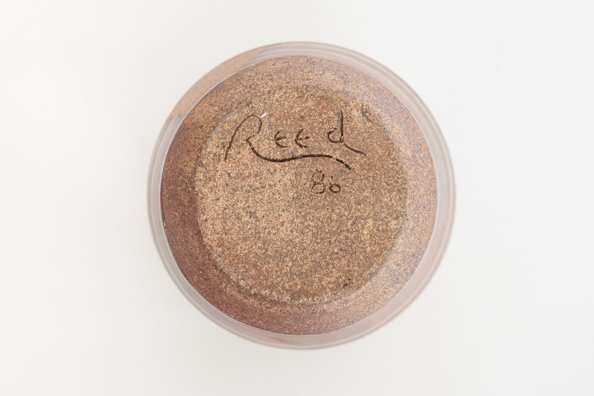 style: signed, studio pottery, vase, displaymaterial: clay, glaze (brown, white)age: vintage, 1986condition: good, age related wear - see pictures5.25" diameter x 7.25" high