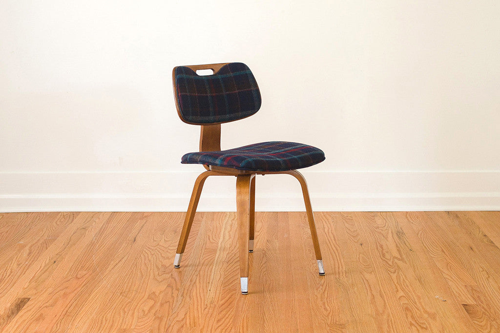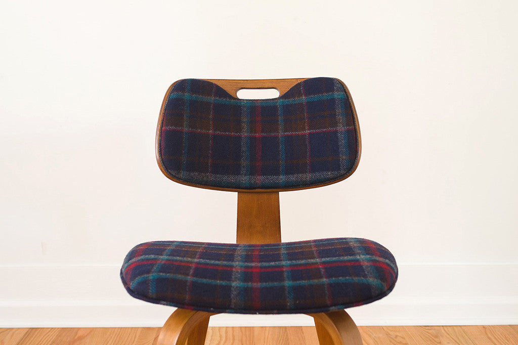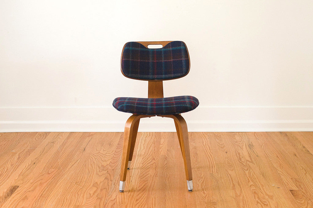 This handsome set of six Thonet brand wood-framed Mid Century dining chairs were reupholstered in a vintage plaid Pendleton® wool fabric. They were refinished and re-stained, leaving some of the natural wear and character in tact. They have sturdy frames and are very comfortable. We absolutely love how they turned out. Please see pictures for detailed condition of this set.