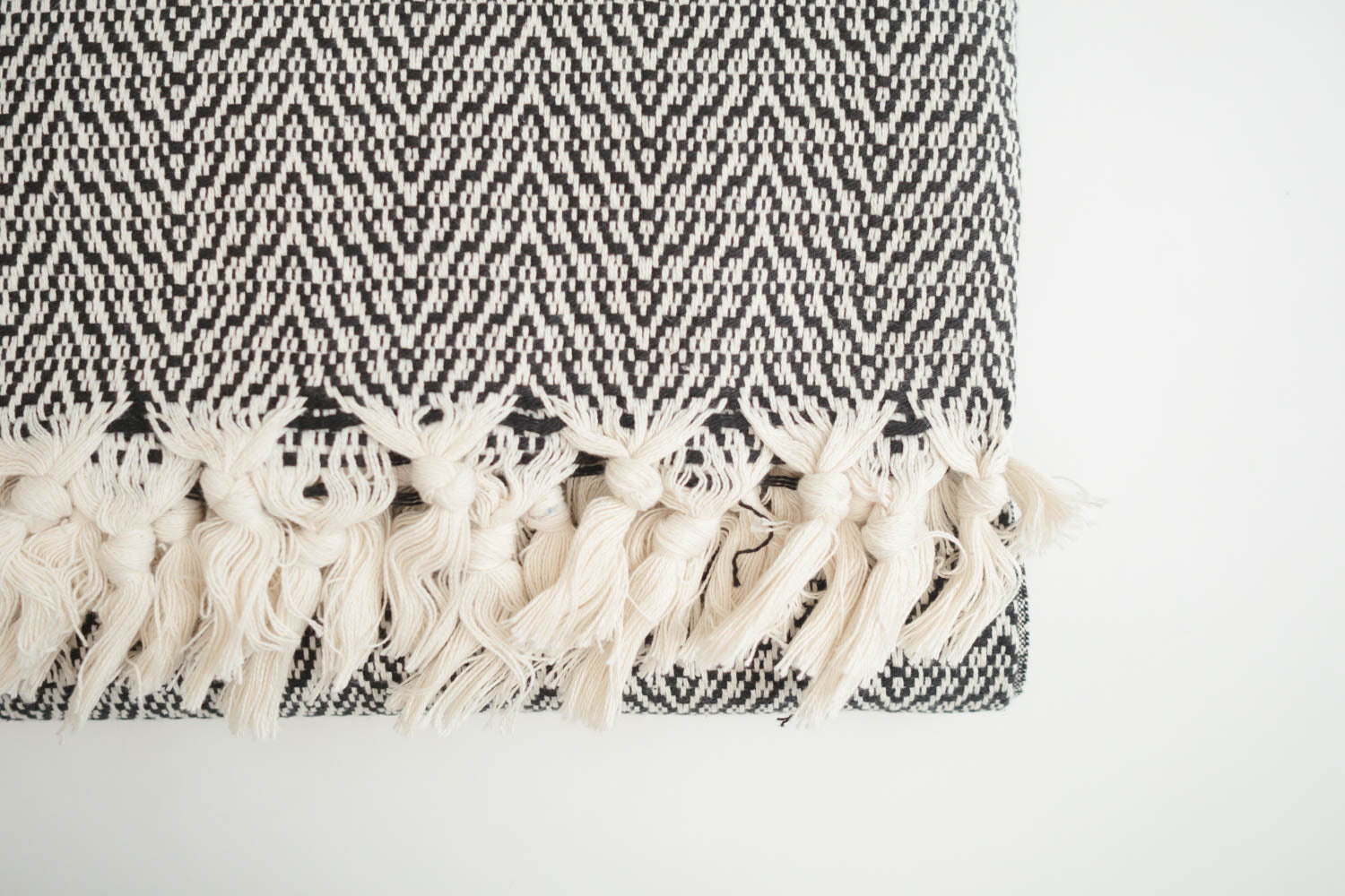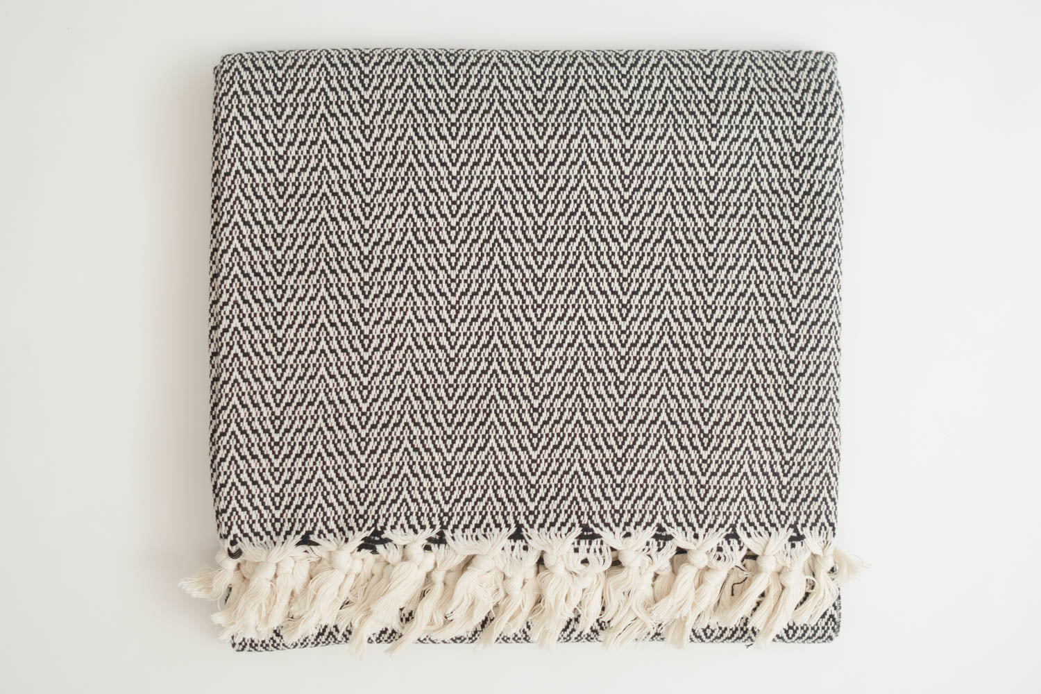 style: Turkish, peshtemal, woven, blanket, throwmaterial: cottoncolors: black, white - broken twillage: newcare: machine wash cold, tumble dry lowsku: tb-13
