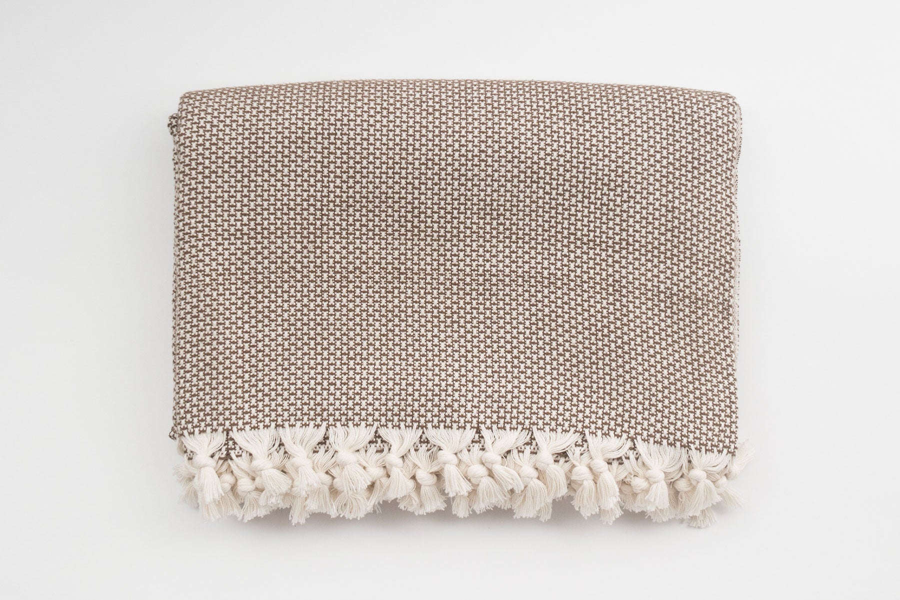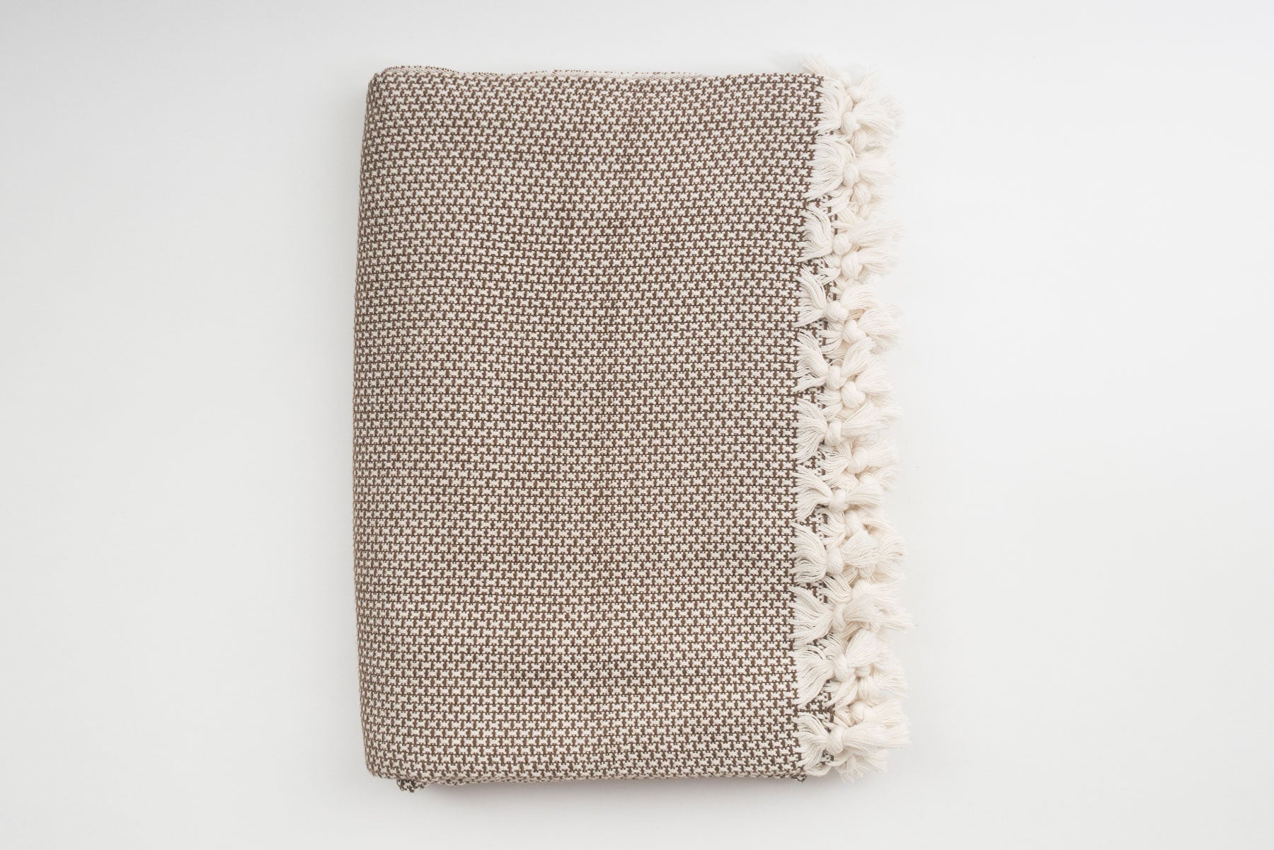 style: Turkish, peshtemal, woven, blanket, throwmaterial: cottoncolors: olive, cream - broken twillage: newcare: machine wash cold, tumble dry lowsku: tb-08 68" x 88"