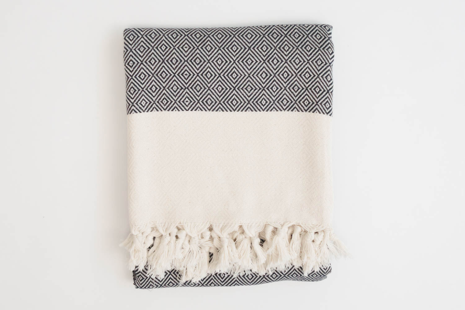 style: Turkish, peshtemal, woven, towel, throw, diamondmaterial: cottoncolors: black, whiteage: newcare: machine wash cold, tumble dry lowsku: tt-24