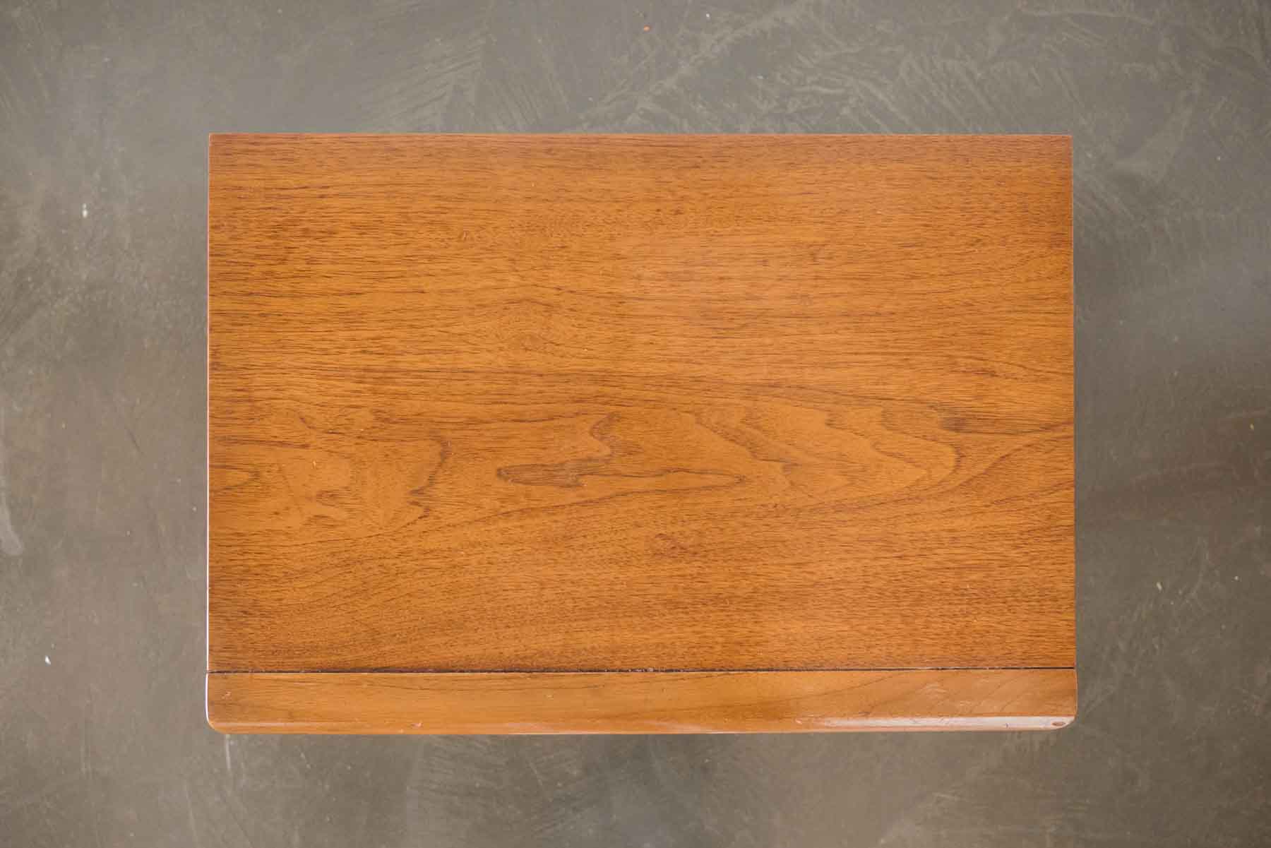 style: Mid Century, Modern, nightstand, side table, end table material: wood (walnut) brand: United Furniture age: vintage condition: good, age related wear - see pictures