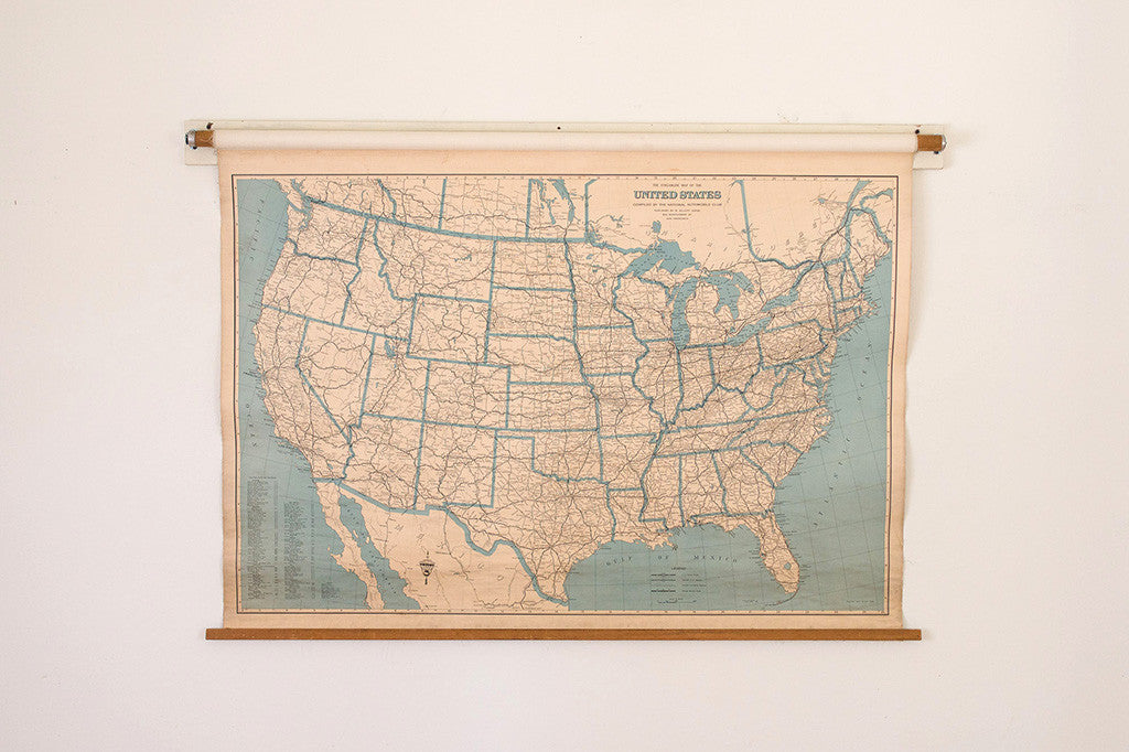 This large pull down US Highway map was compiled by the National Automobile Club and published in San Francisco. It's in great overall shape and is ready to hang. Please see pictures for detailed condition of this piece.