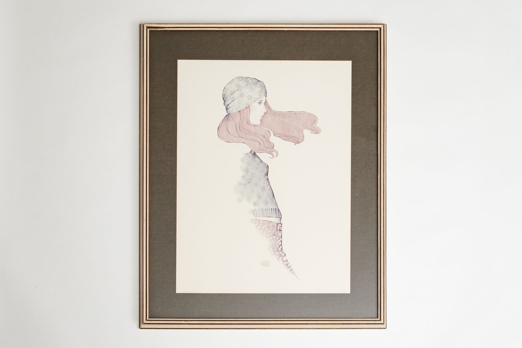style: framed, Deco, lithograph, fashion, print, 70s, portrait material: wood, paper, glasssigned: A. Gruerioage: vintage, 1970'scondition: good, age related wear - see pictures
