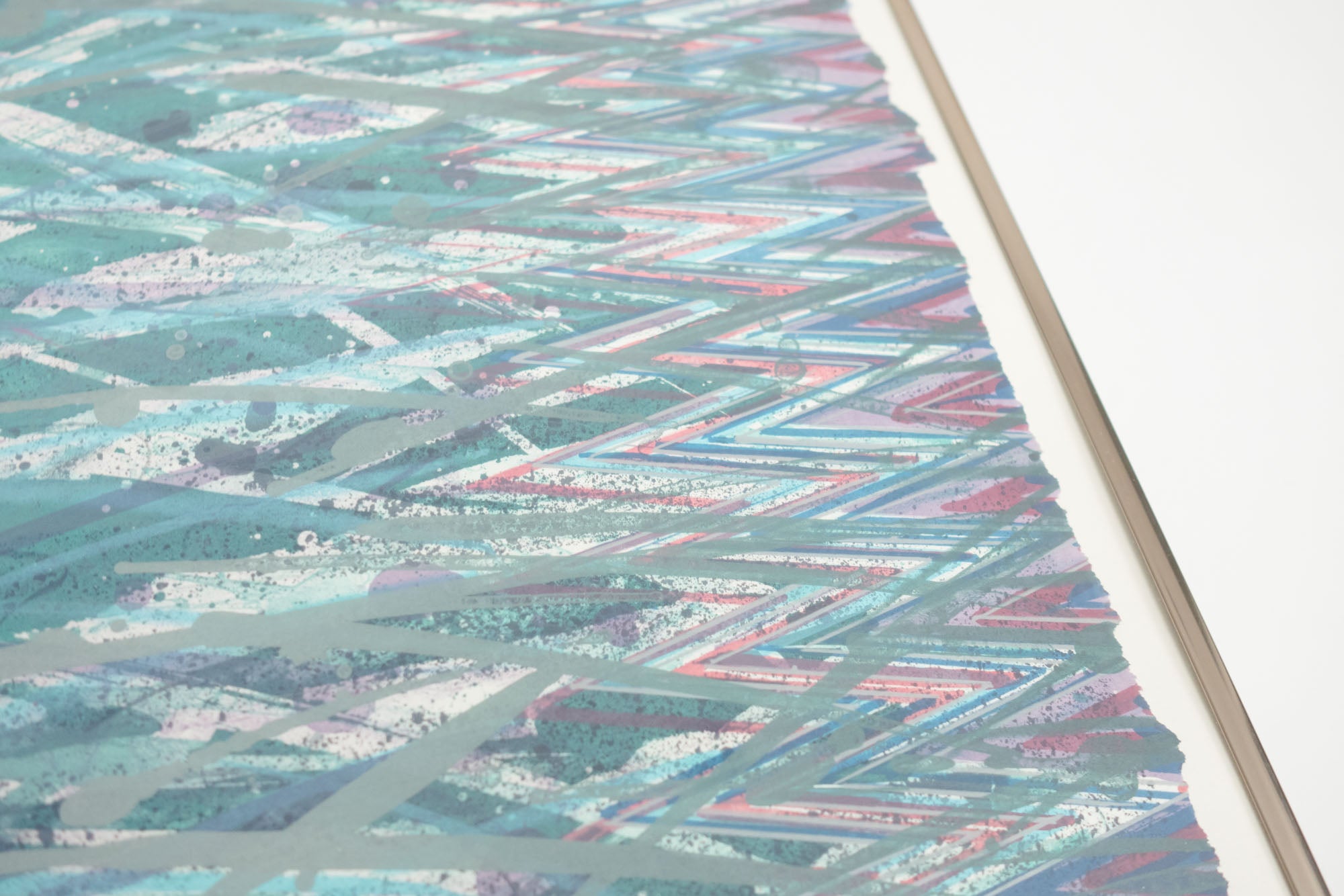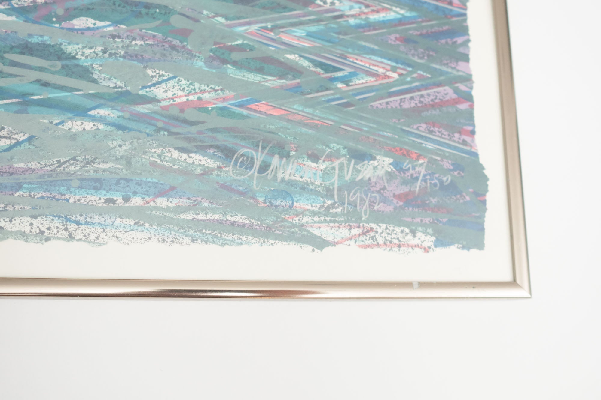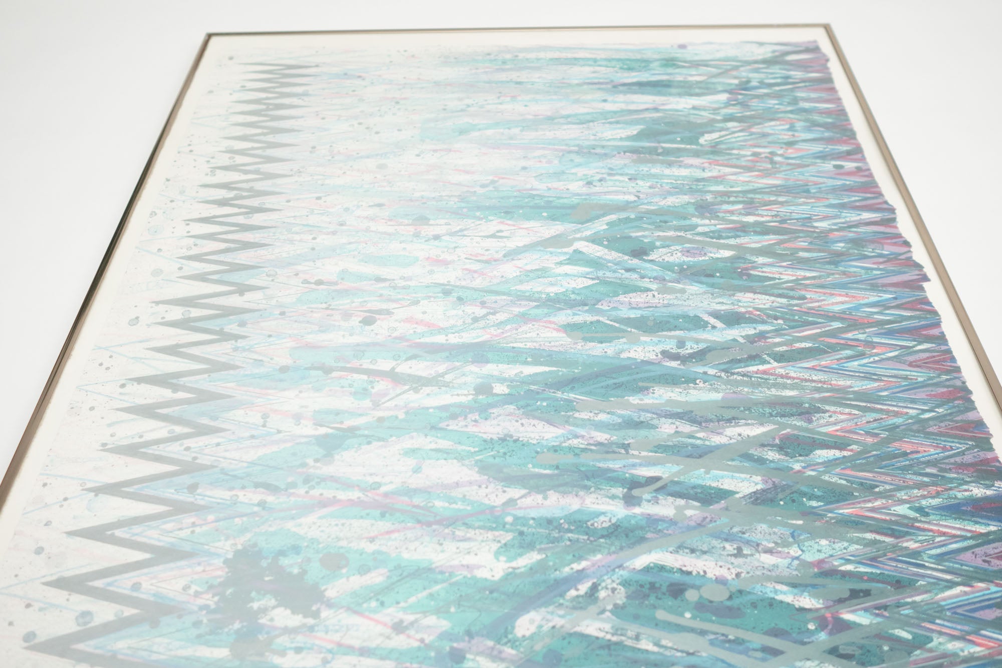 style: original, mod, modern, abstract, print, lines, gray, bluematerial: metal, ink, paper, glasssigned: Karen Guzakage: vintagecondition: good, age related wear - see pictures