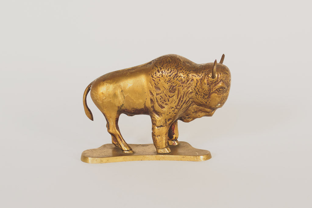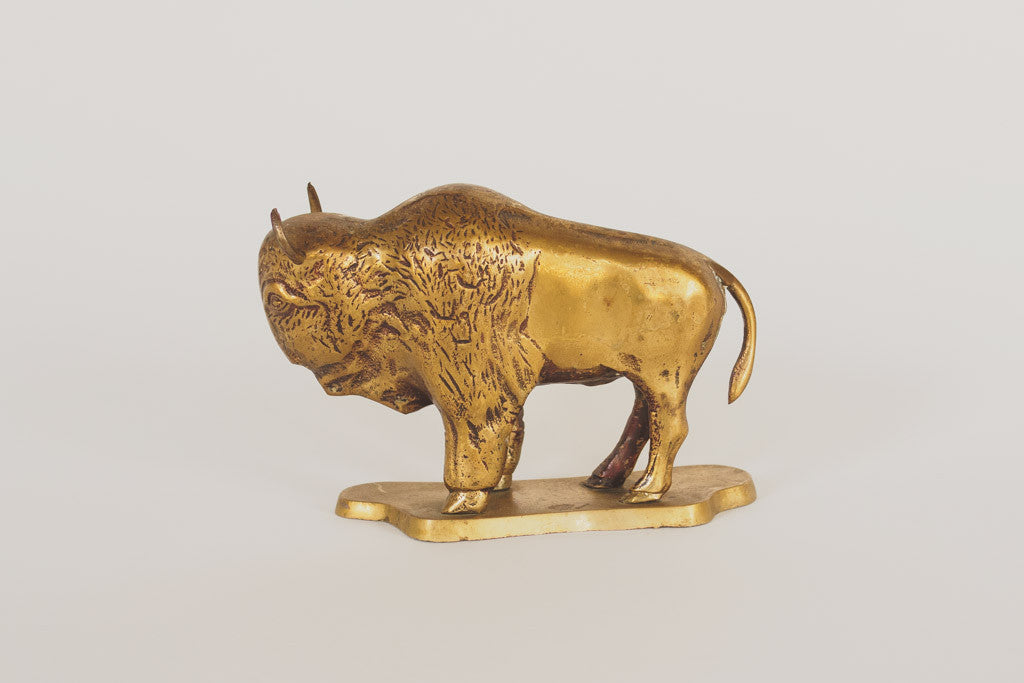 This brass bison statue is in great shape with a shiny finish, nice detail work and age related wear. Please see pictures for detailed condition.