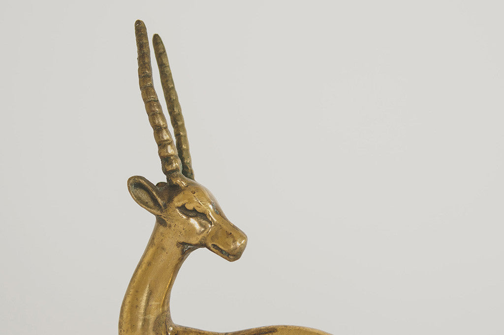 This vintage brass gazelle figure is in good shape with a shiny and nicely distressed finish. Please see pictures for detailed condition.
