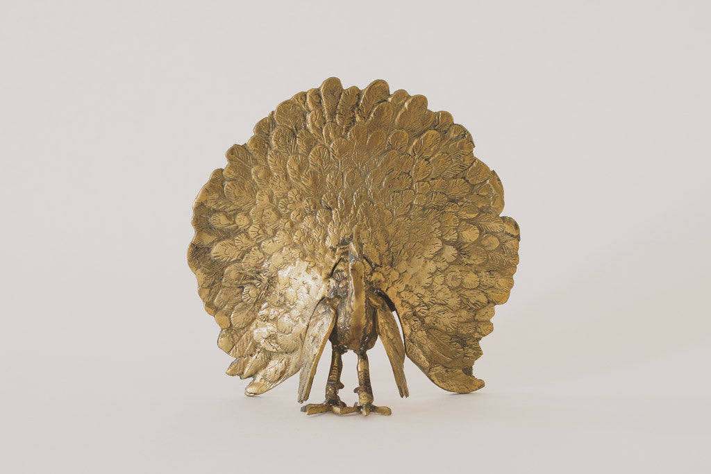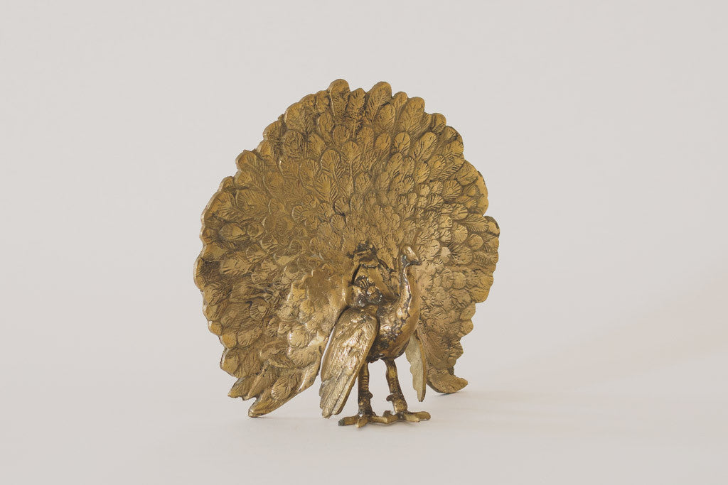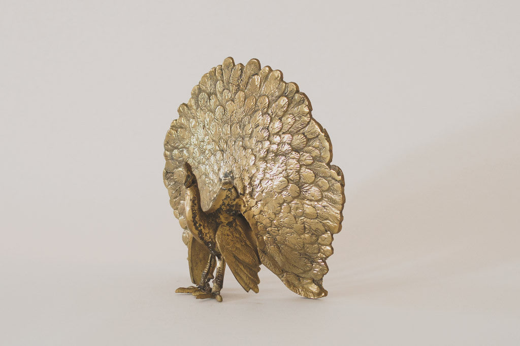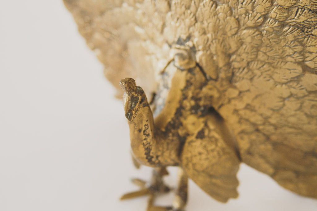 This brass peacock statue is in great shape with a shiny finish, nice detail work and some light age related wear. Please see pictures for detailed condition.