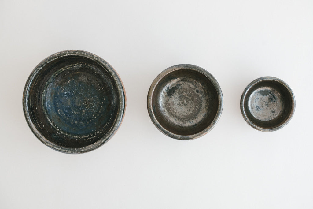 style: large, hand crafted, pottery, serving, bowls, set of three