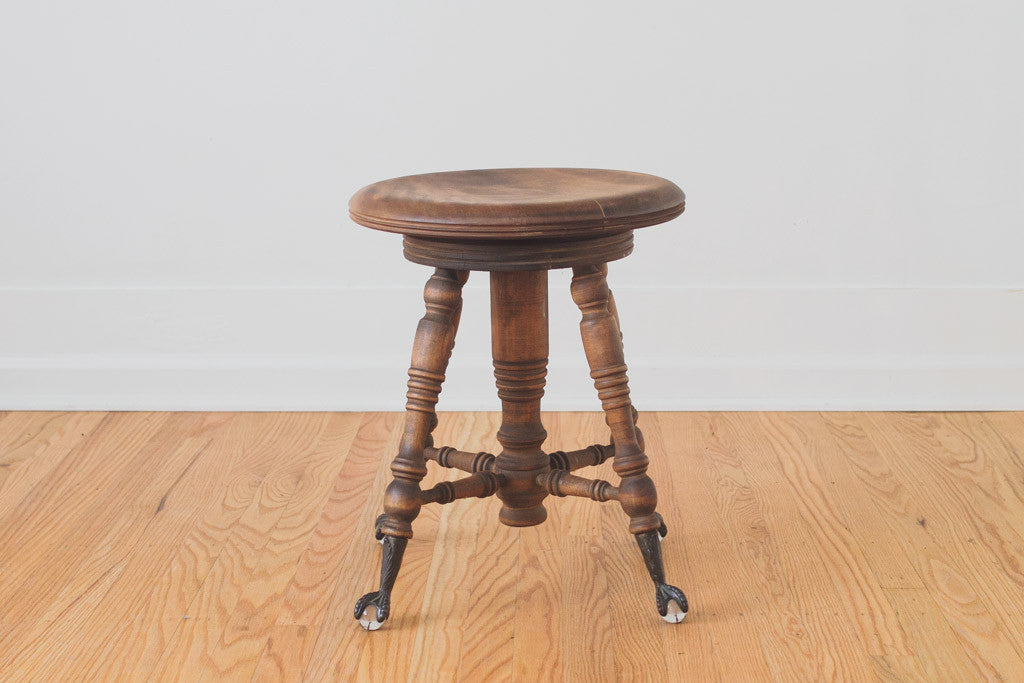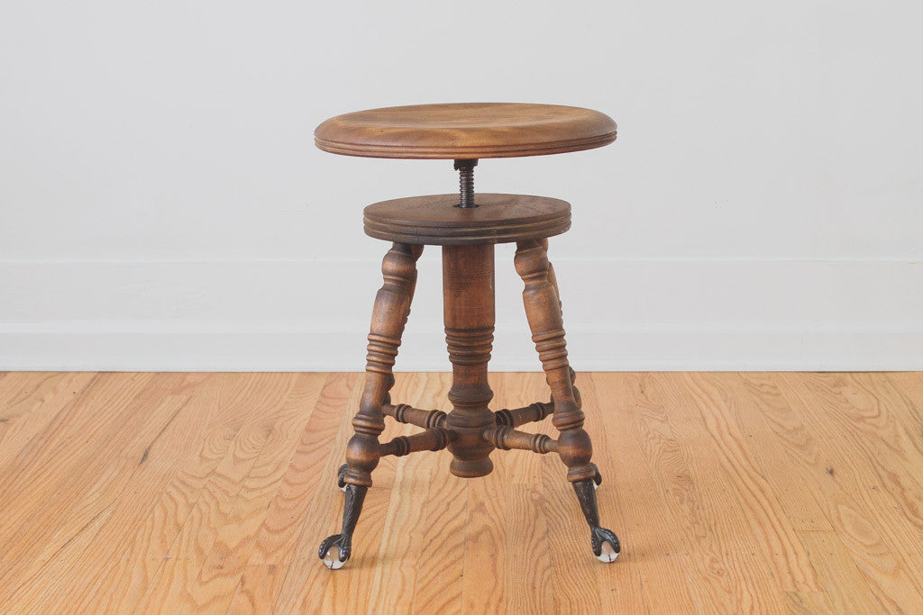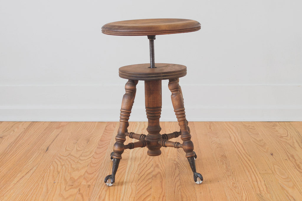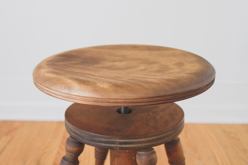 This vintage maple piano stool was manufactured by Tonk. It's adjustable in height and would be perfect with a drafting table, desk, vanity or at a kitchen island. It could also be used as a plant stand or side table. It's in good shape with age related wear. Please see pictures for detailed condition.