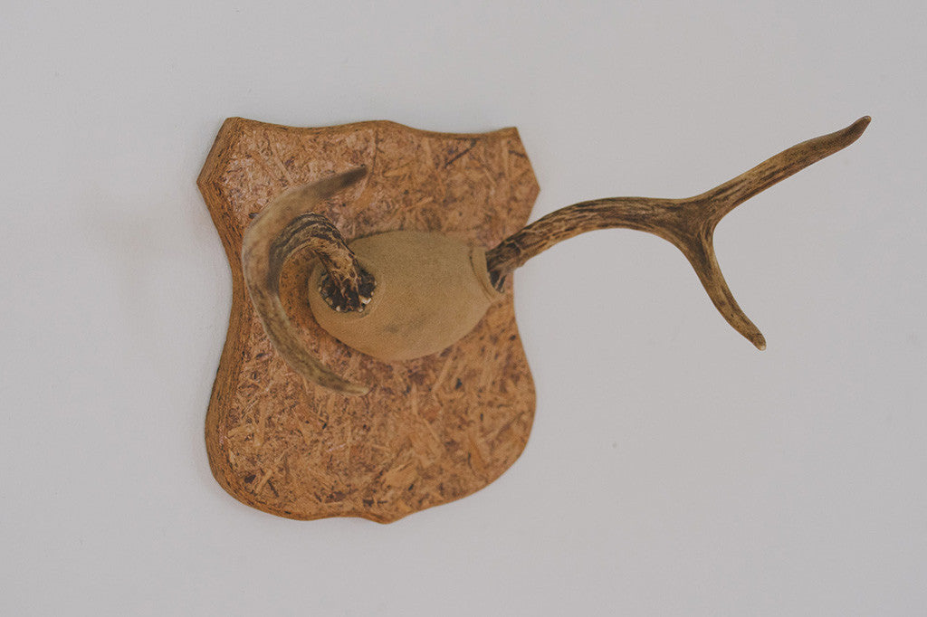 These vintage deer antlers are mounted on a pressboard plaque with tan suede upholstery. They're in good shape with some age related wear. Besides being displayed, they would make a great coat, hat or towel rack. Please see pictures for detailed condition.