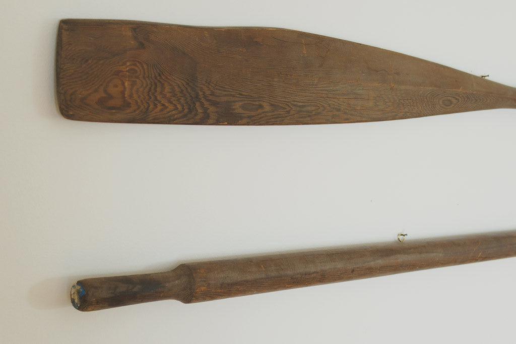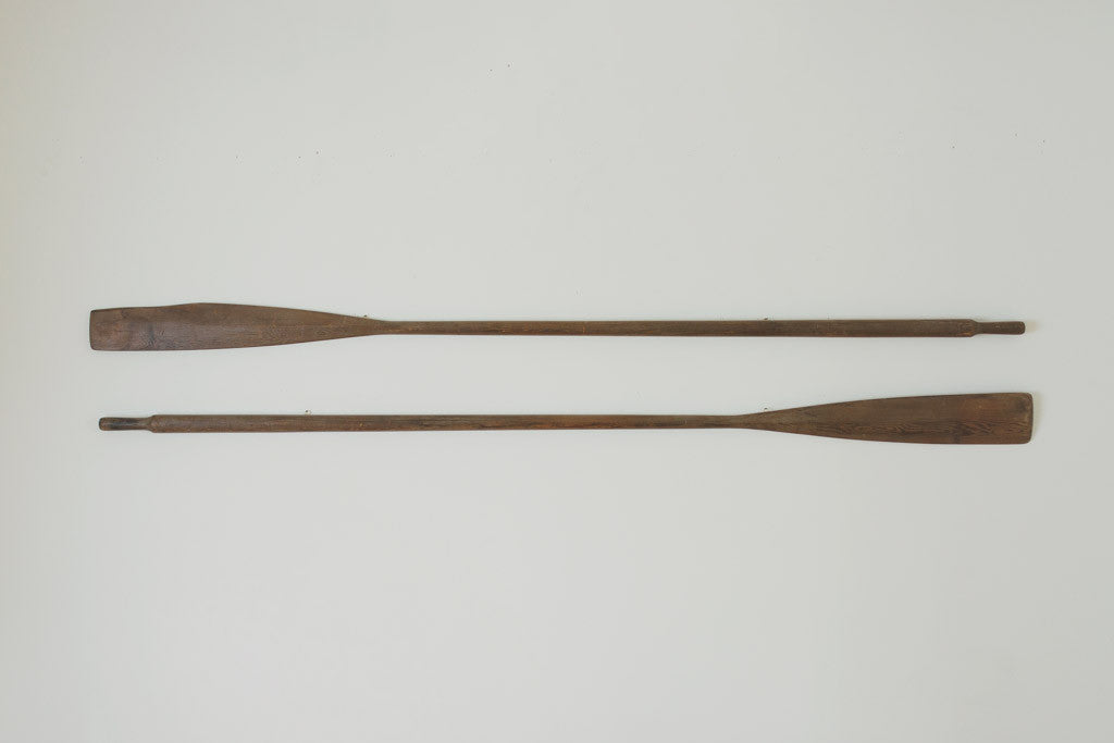 These vintage nautical oars are cedar with eye hooks for mounting vertically or horizontally. They are in good shape with natural distressing and wear. Please see pictures for detailed condition.