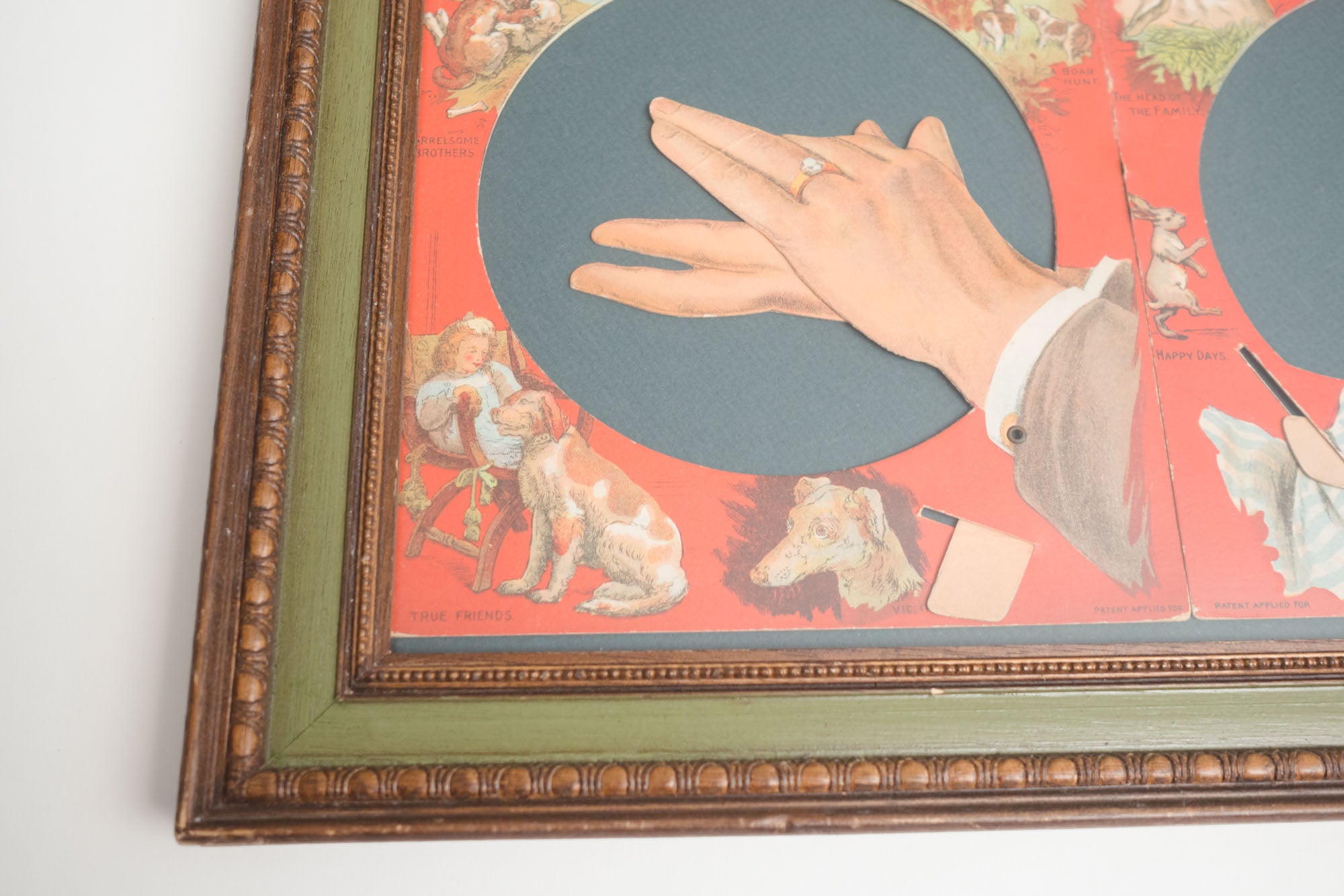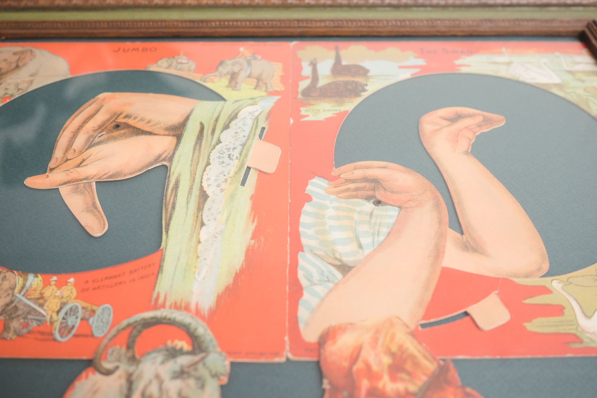 style: original, diagram, shadow puppet, hands, framedmaterial: paper, ink, glass, woodage: vintagecondition: good, age related wear - see pictures