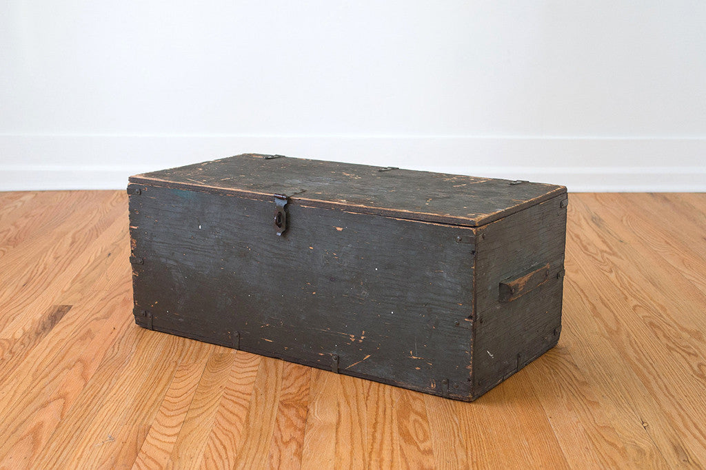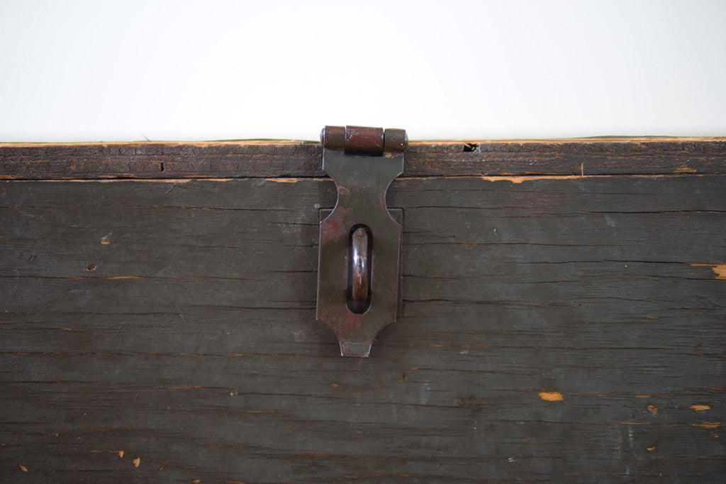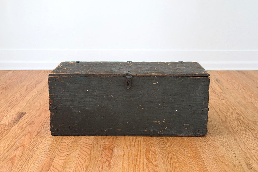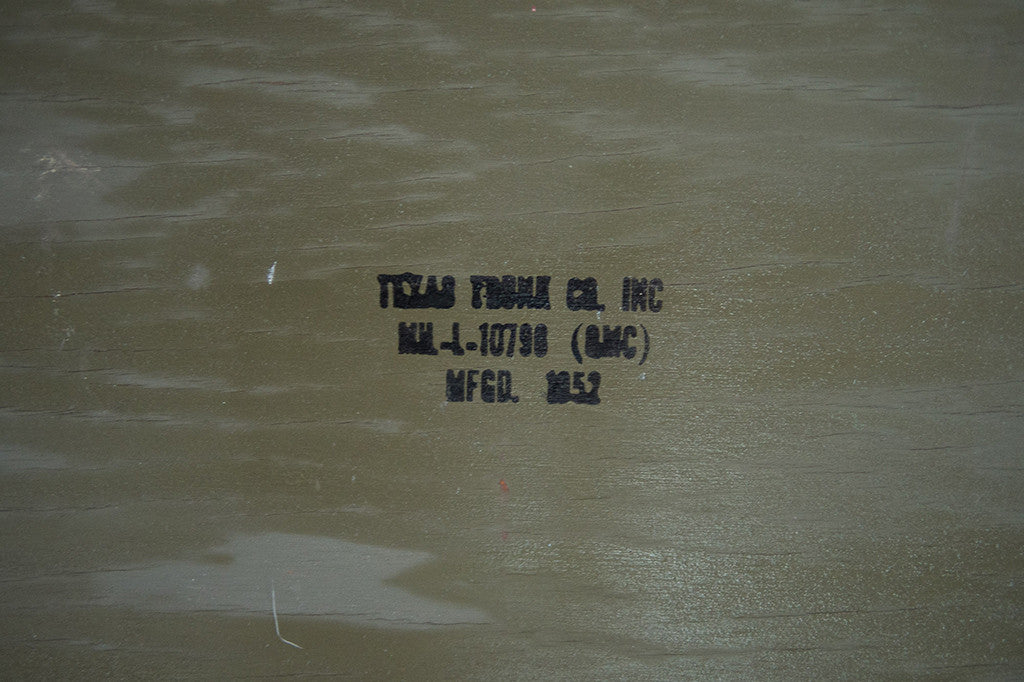 This vintage US military trunk was manufactured by the Texas Trunk Co. in 1952. It has a perfectly distressed patina and a generous amount of storage space. It would work well as a smaller coffee table, side table, at the foot of the bed, as an ottoman or for extra seating. Please see pictures for detailed condition of this piece.