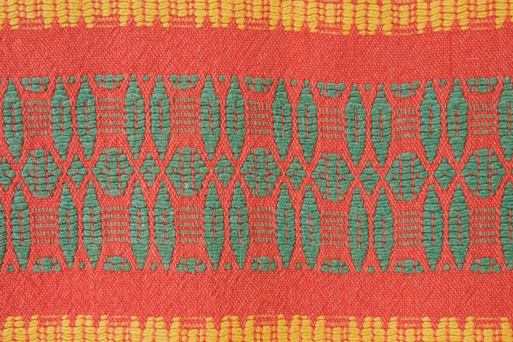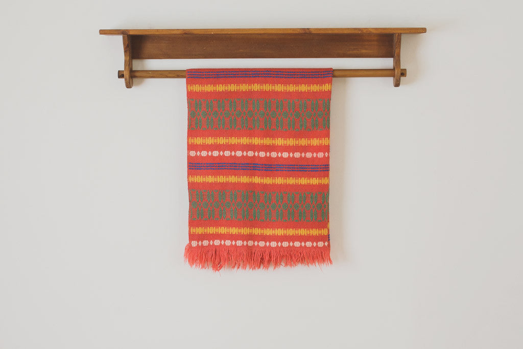 This vintage medium-weight woven camp blanket has an orange base with white, yellow, green and blue accents. It's in great shape and would be perfect for picnics, camping or thrown over your favorite chair. Please see pictures for detailed condition.