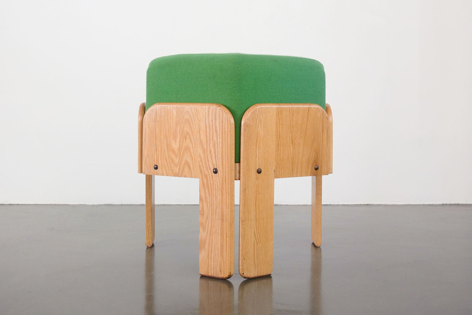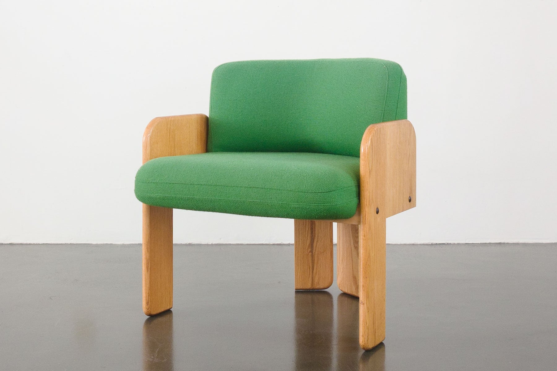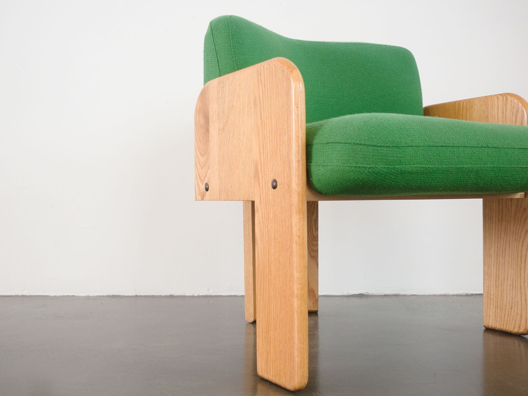 style: modern, tripod, side, lounge, arm chair material: wood (oak), original upholstery (green wool) designer: Vladimir Kagan (attributed) age: vintage, Mid Century condition: good, age related wear - see pictures