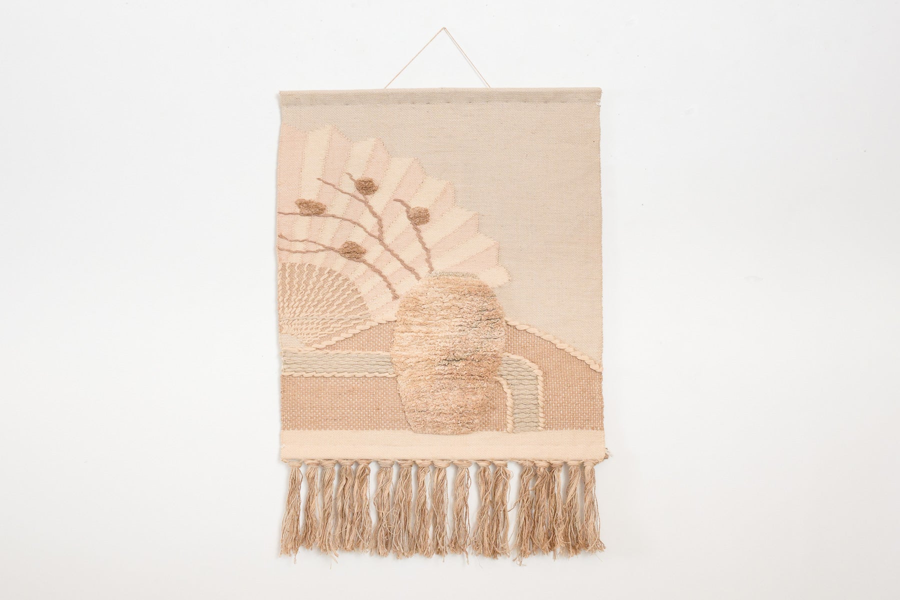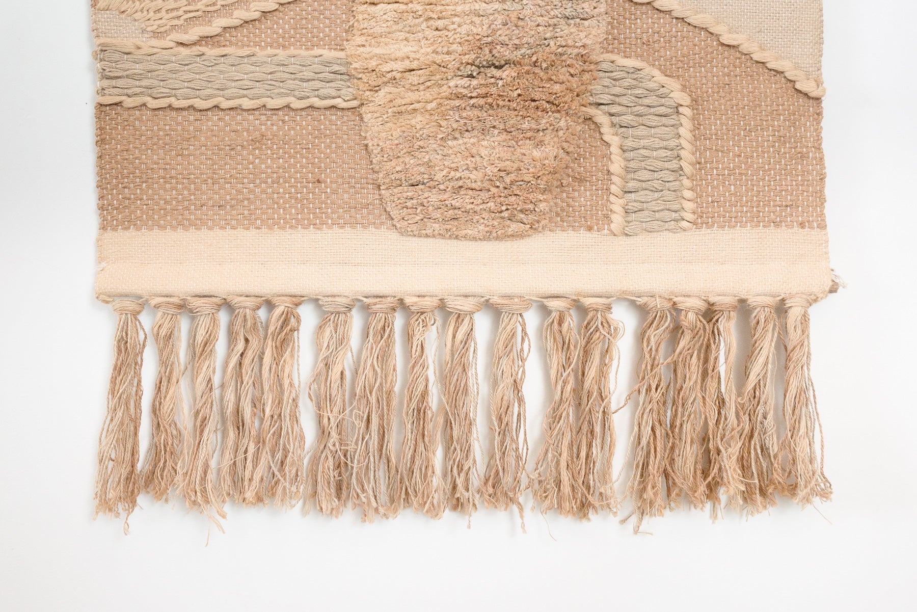 style: hand woven, weavingmaterial: yarn, jute, woodage: vintagecondition: good, age related wear - see pictures