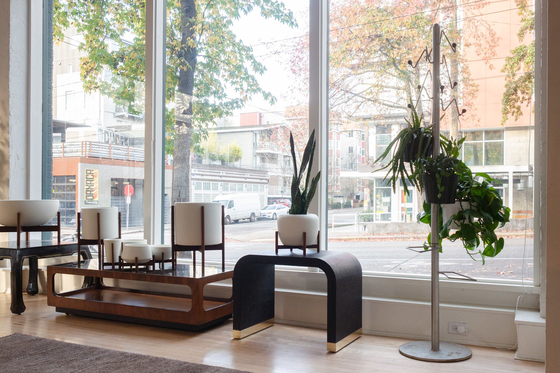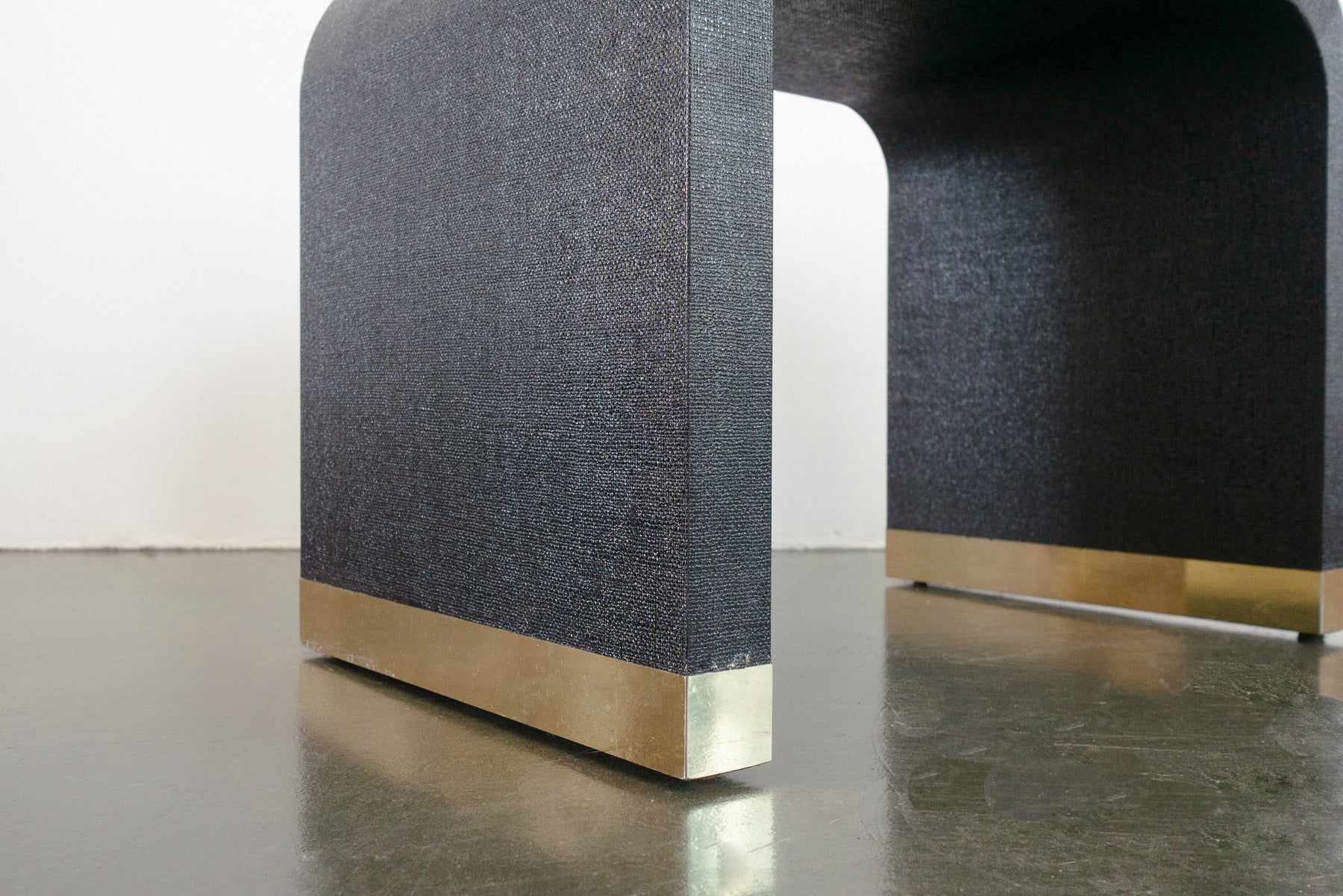 material: wood, grasscloth, brass