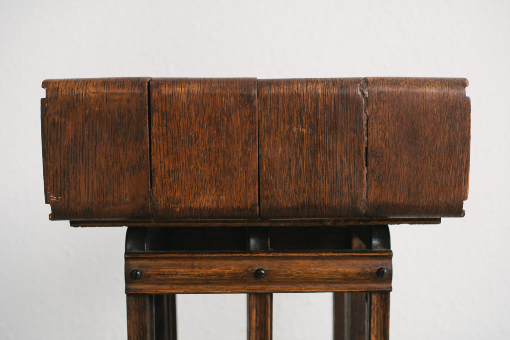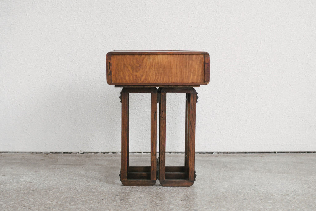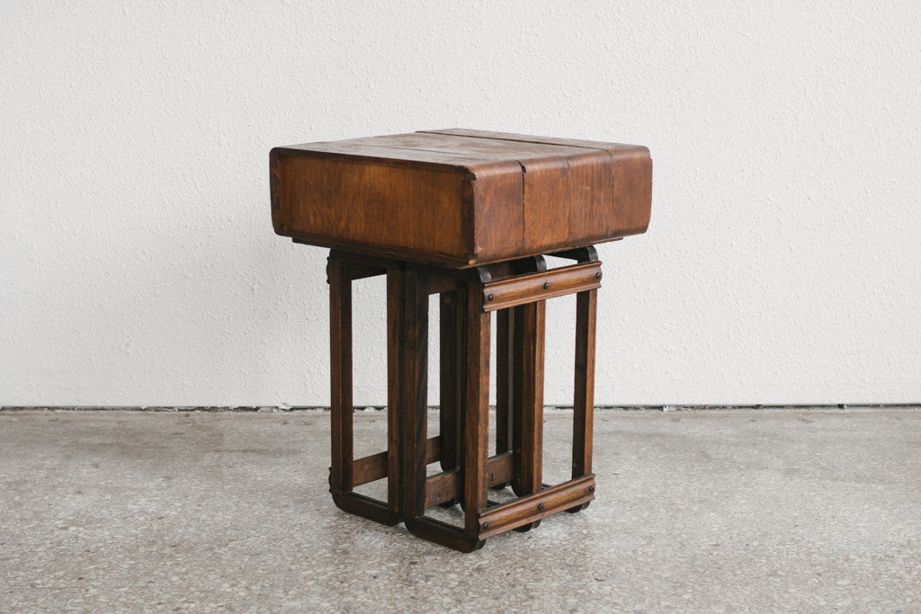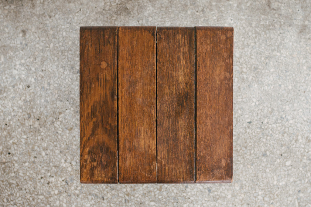 style: hand crafted, side or end table, nightstand, plant standmaterial: woodage: vintage condition: good, age related wear - see pictures