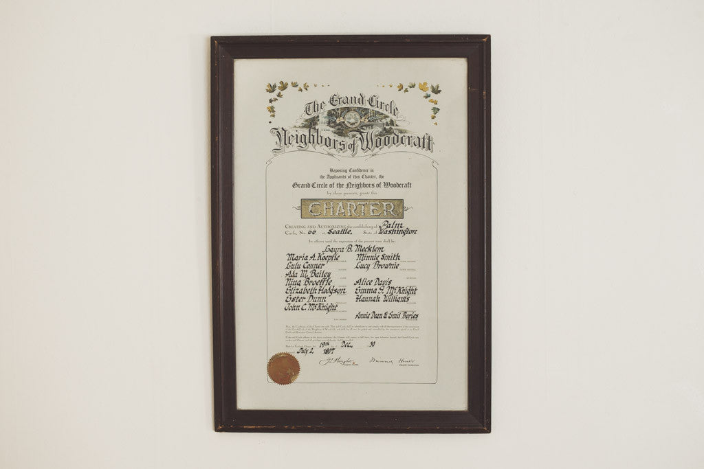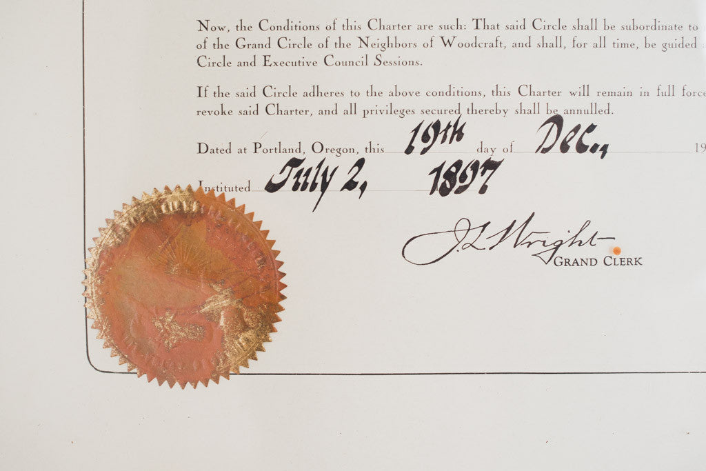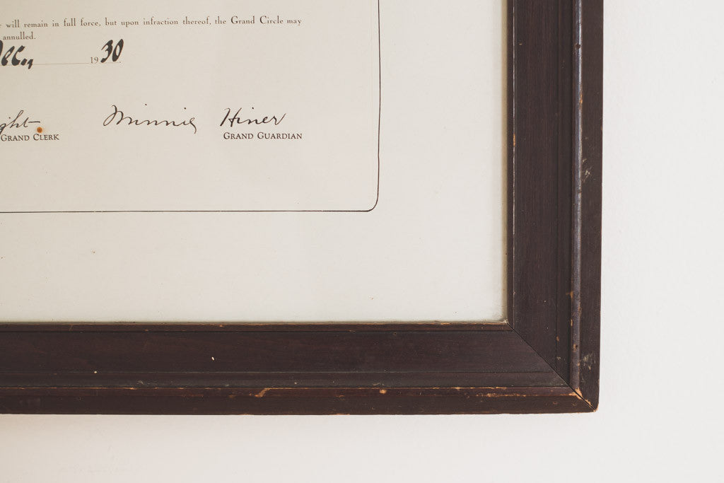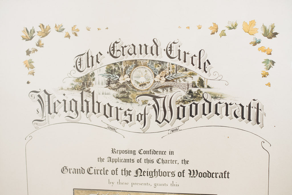 This vintage document is signed by a collection of people that belonged to "The Grand Circle of the Neighbors of Woodcraft" in Seattle, dated 1930. It has a wood frame with glass and is in good shape with age related wear. See pictures for detailed condition.