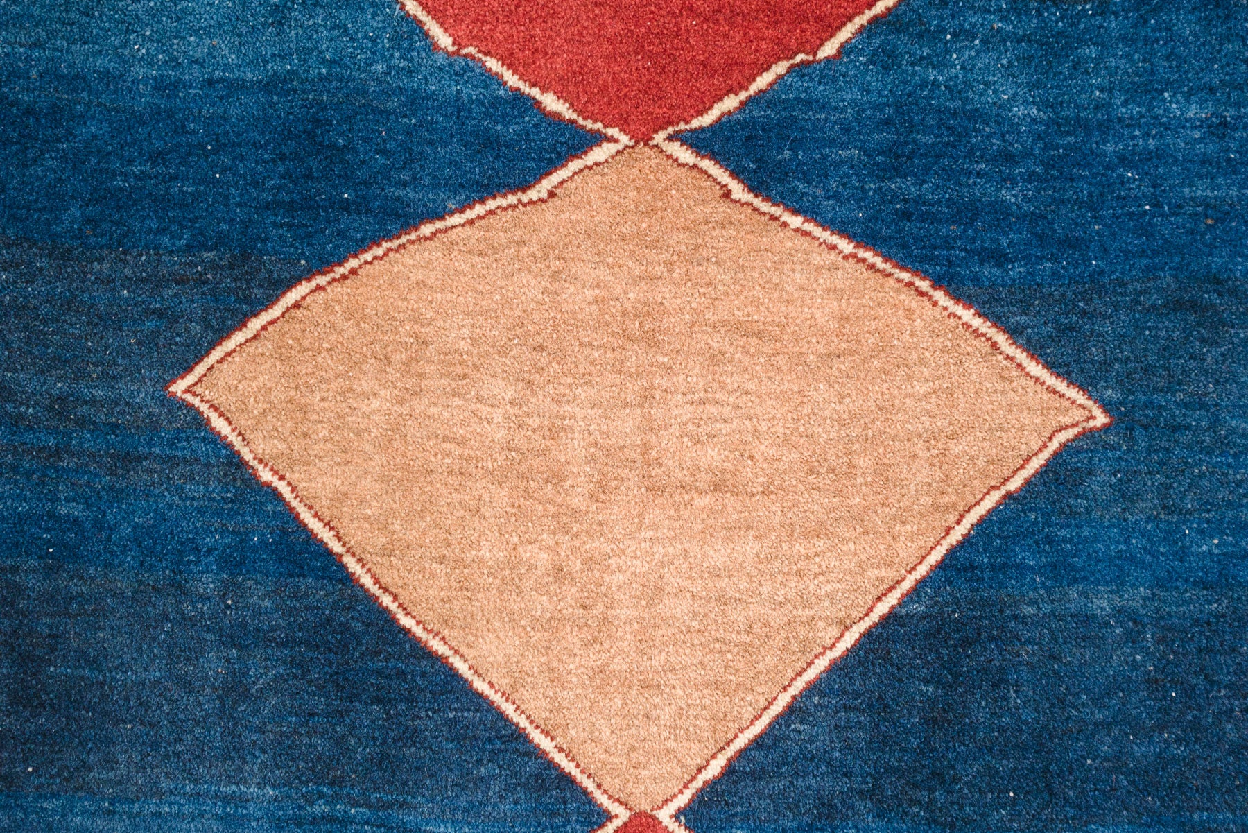 name: Urumanorigin: Iran (Persian), Fars, Shiraz, Gabbehstyle: rug, carpetmaterial: hand knotted woolcolors: blues, red, camel, creamage: vintage, 1960-1980condition: good, age related wear - see picturesappraised value: $700